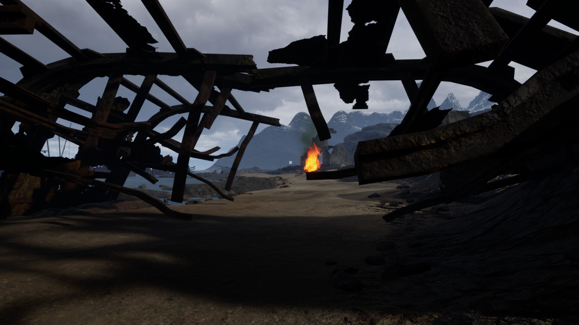 Explore a coastal ship graveyard - wrecked vessels, sea caves and abandoned buildings