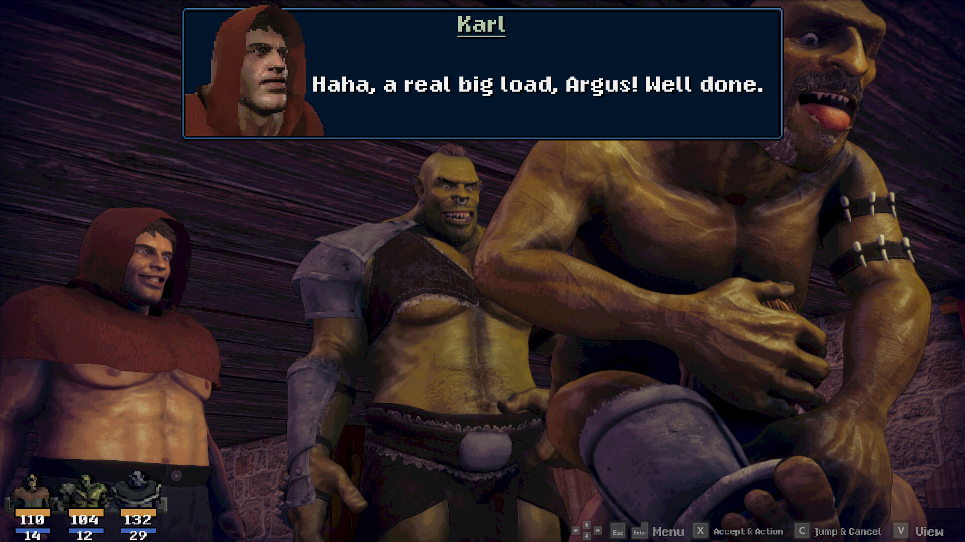 Orc Bastion is a gay adult bara JRPG with a turn-based battle mode. Join forces with orcs, trolls and demons and defeat the Demon Lord who bound your soul to the orc warrior Rok. Please and pleasure your monstrous allies and masters to become stronger and face an ancient evil together.