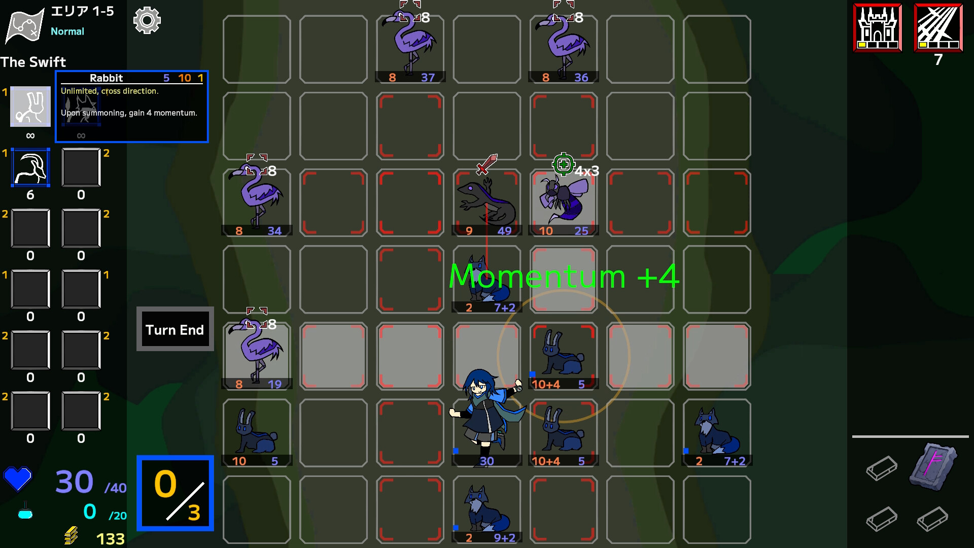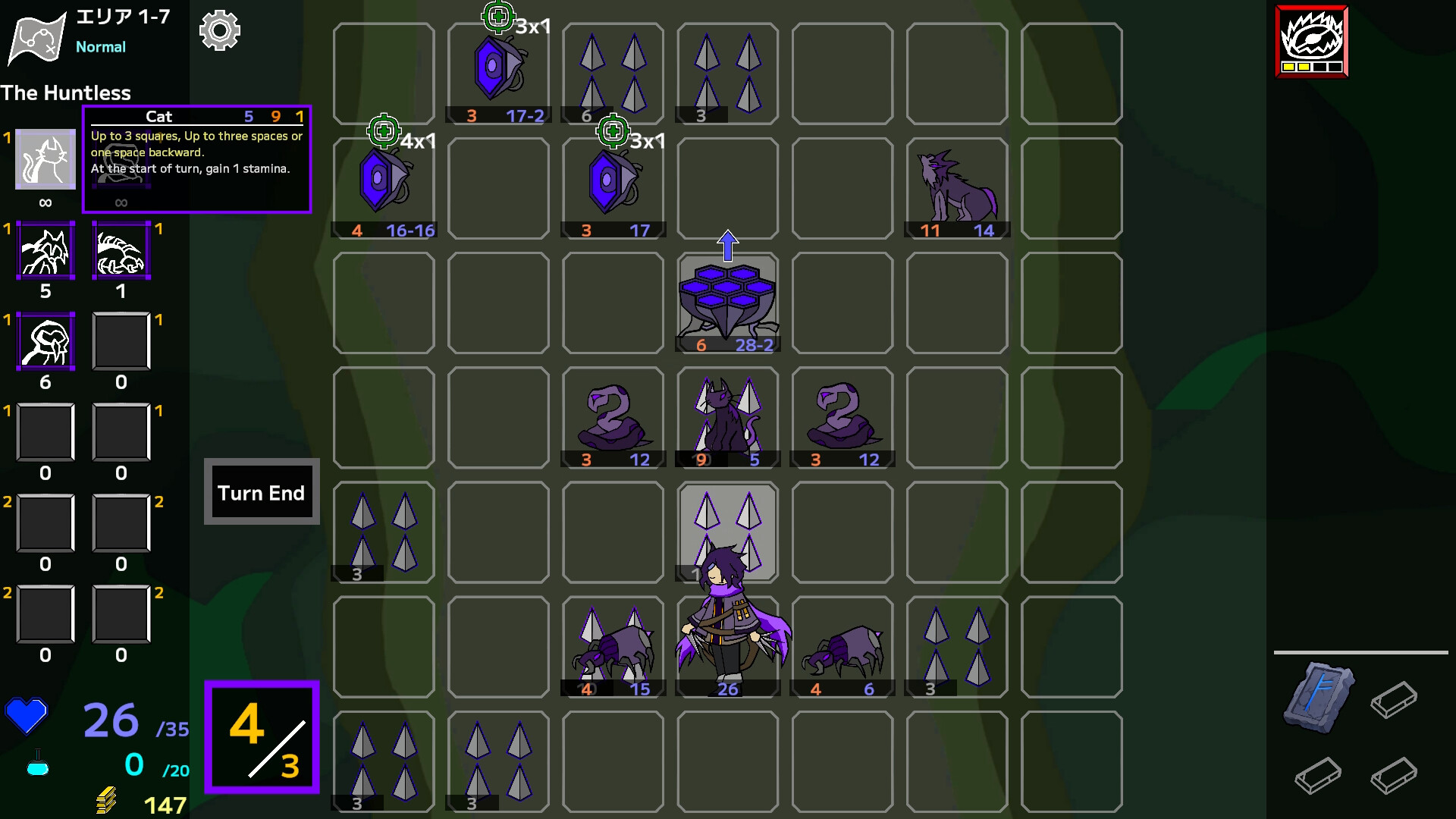 During the player's turn, stamina can be used to perform various actions such as moving, attacking, and summoning animals.