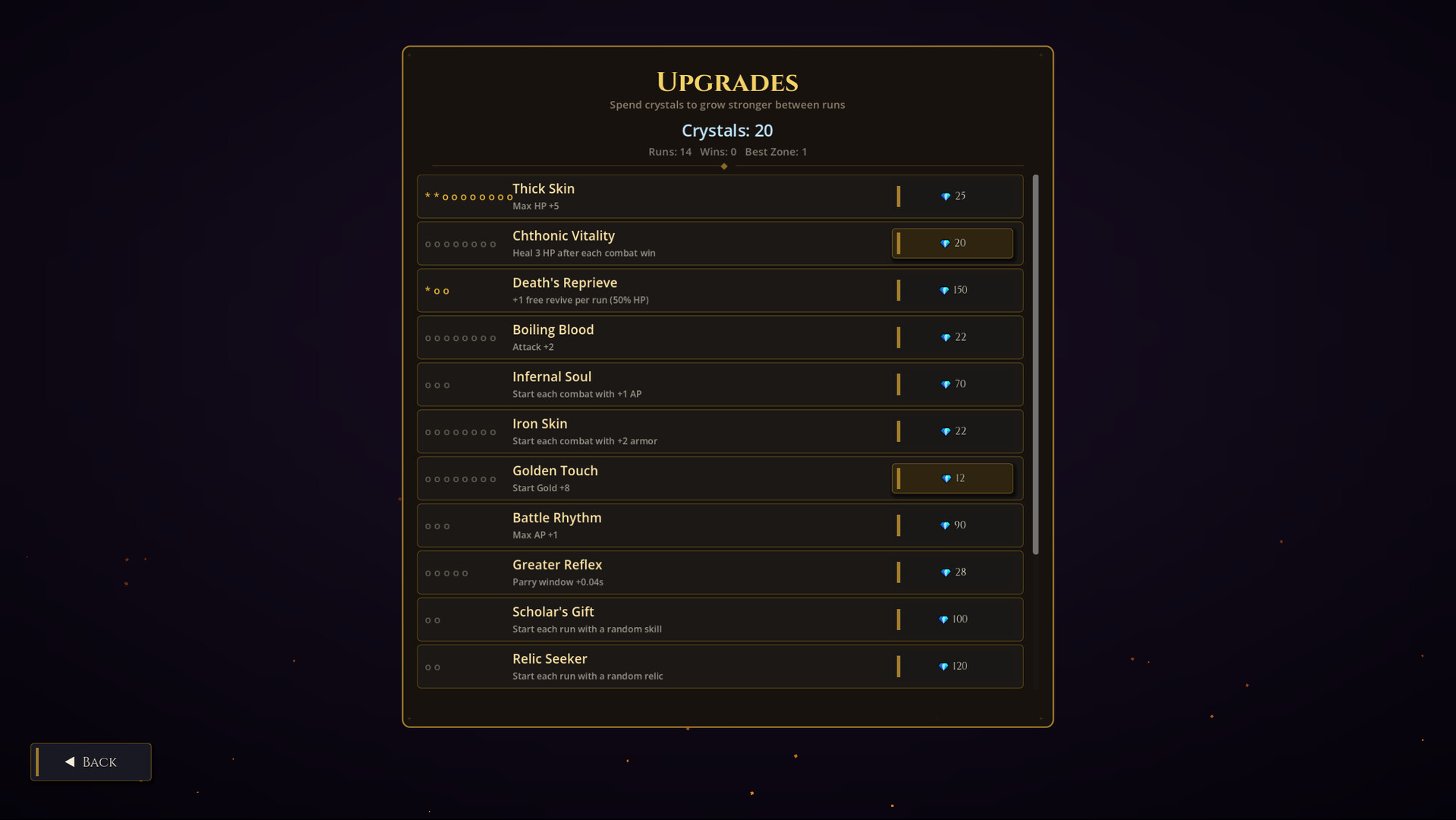 Manage your resources wisely. Visit vendors, rest at camps to recover, and invest in permanent upgrades to grow stronger with every run.