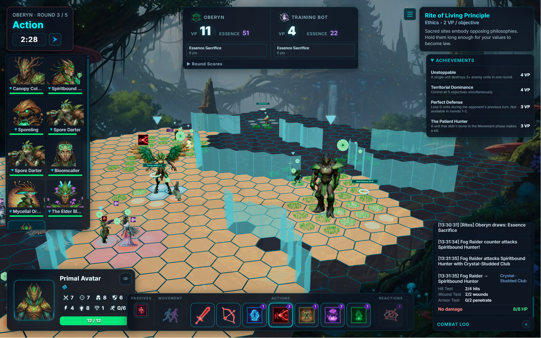 Symbiont Ethos— Living terrain. Growth tiles spread across the battlefield, buffing allies and hindering foes.