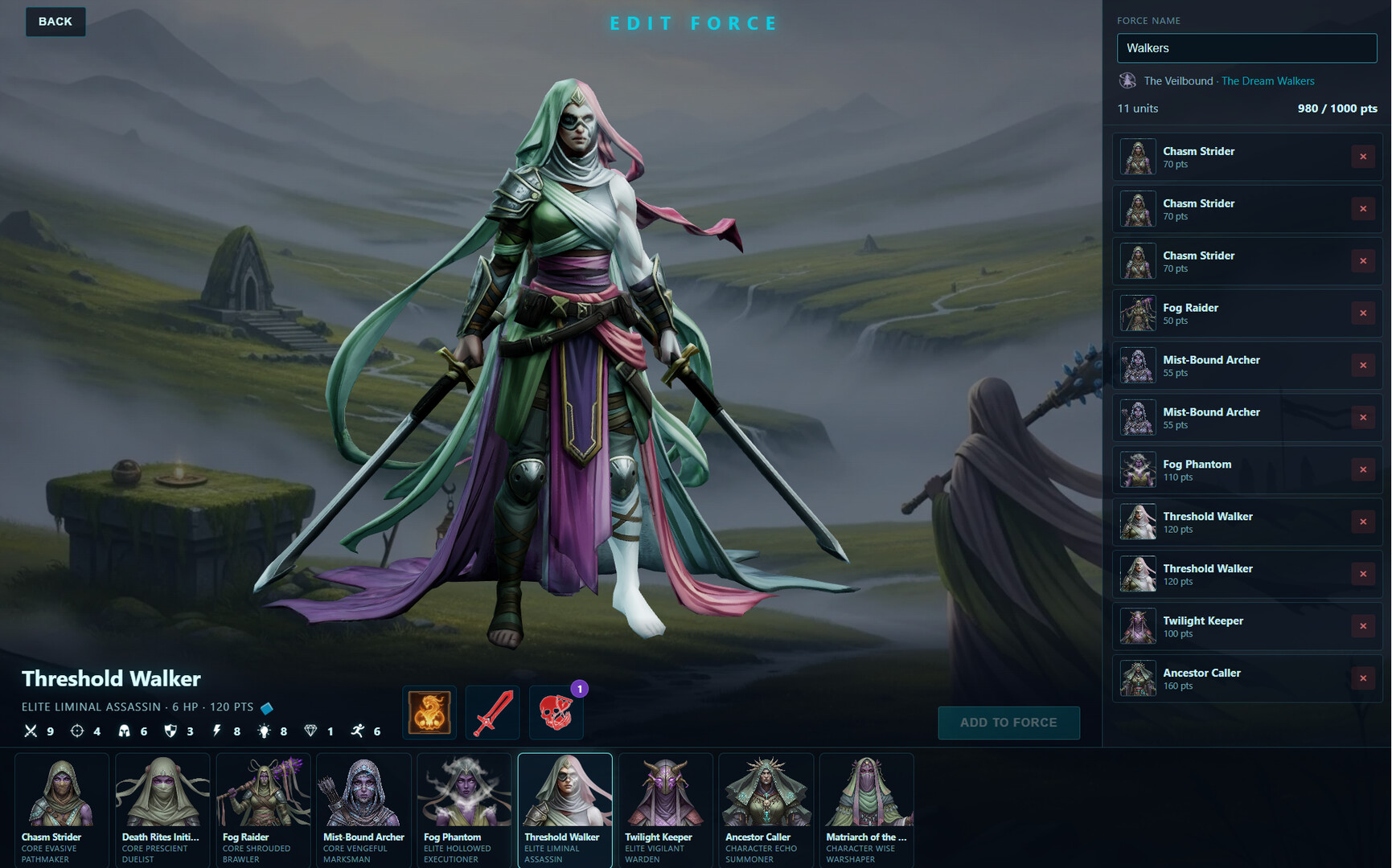 Army Building — Draft your force from a roster of unique units with abilities, subfaction bonuses, and point costs