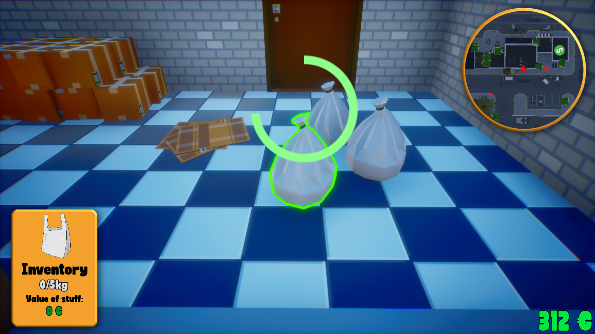 Roam and grab everything you can hold. Every piece of trash has some value. Fill your backpack with valuables until it's full.