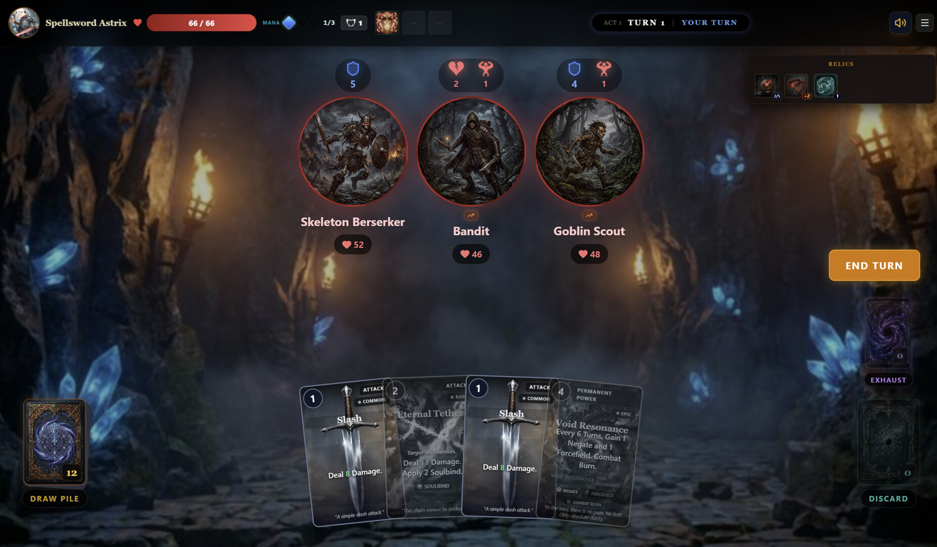 Discover narrative events woven throughout each run. Make choices that grant powerful relics, transform your deck, or lead to secret encounters. The world of Eodolas has stories waiting to be uncovered.