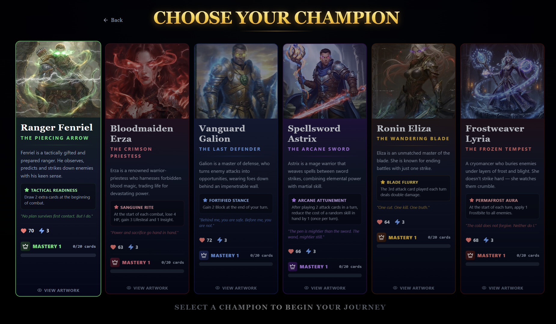 Your journey doesn't end with a single run. Earn XP across dual progression tracks. Universal and Hero Mastery, allowing you to unlock permanent upgrades, new cards, perk trees, and Ascension ranks that increase the challenge.