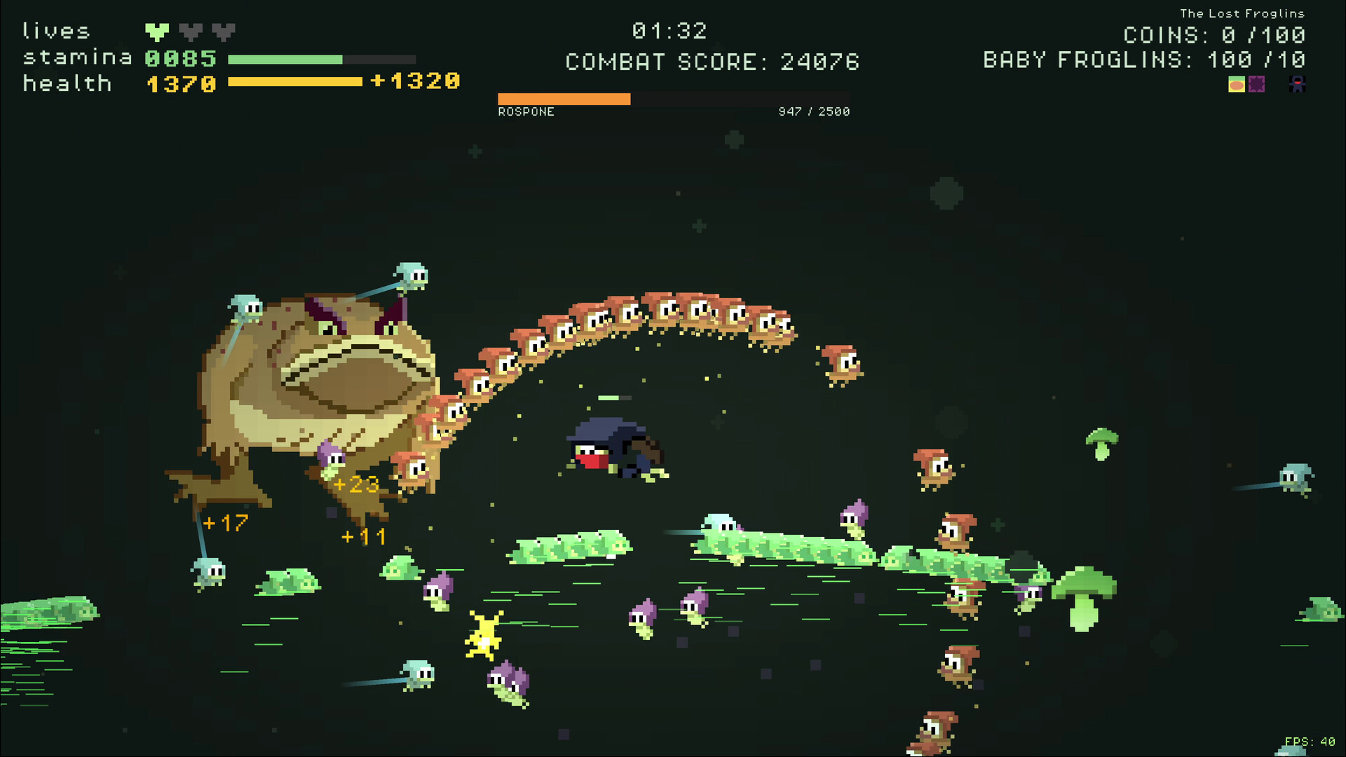 • 100 baby froglins to rescue — resets every run, how many can you save?