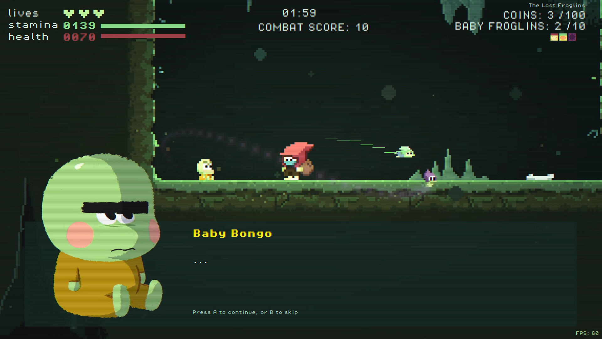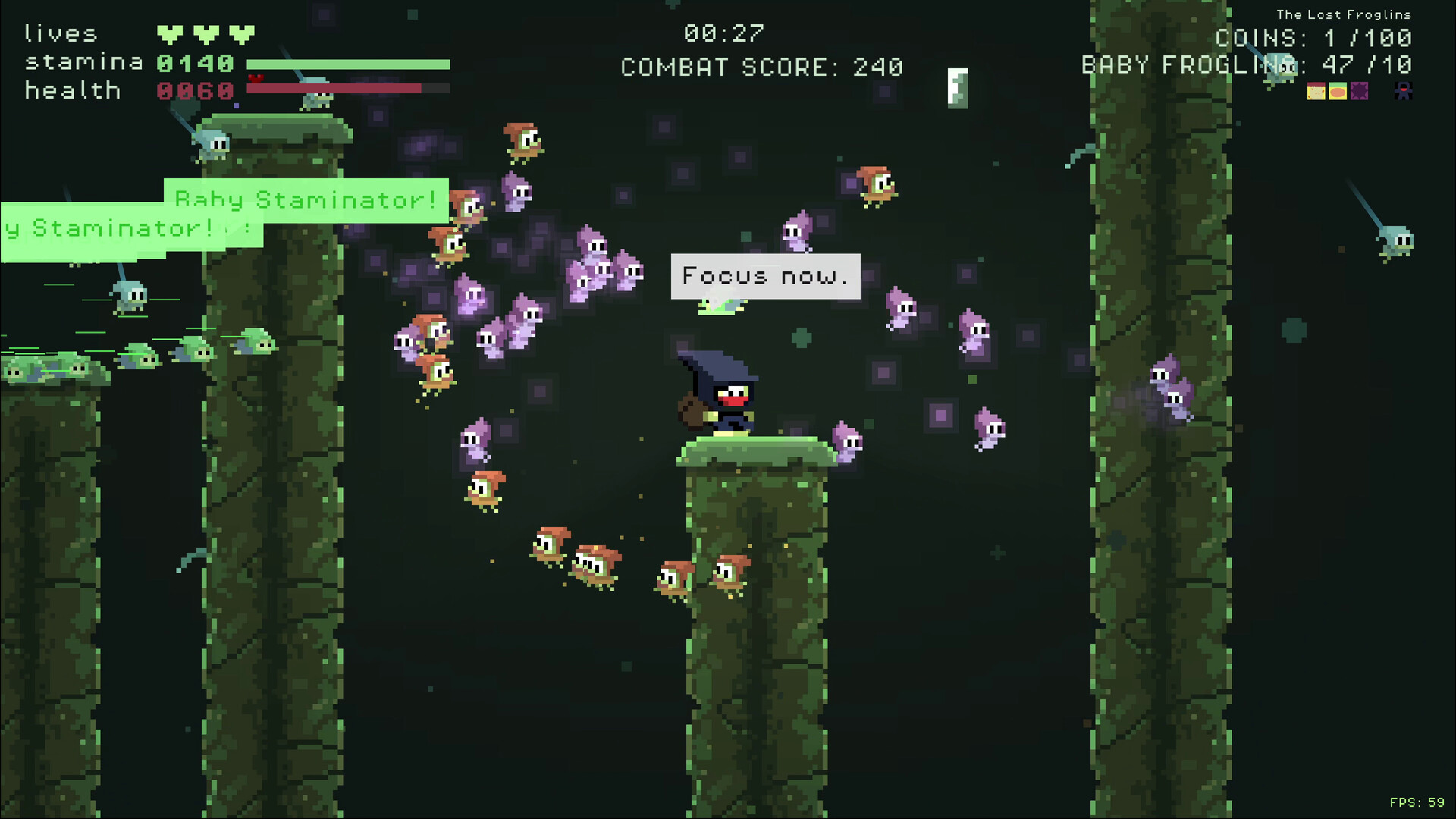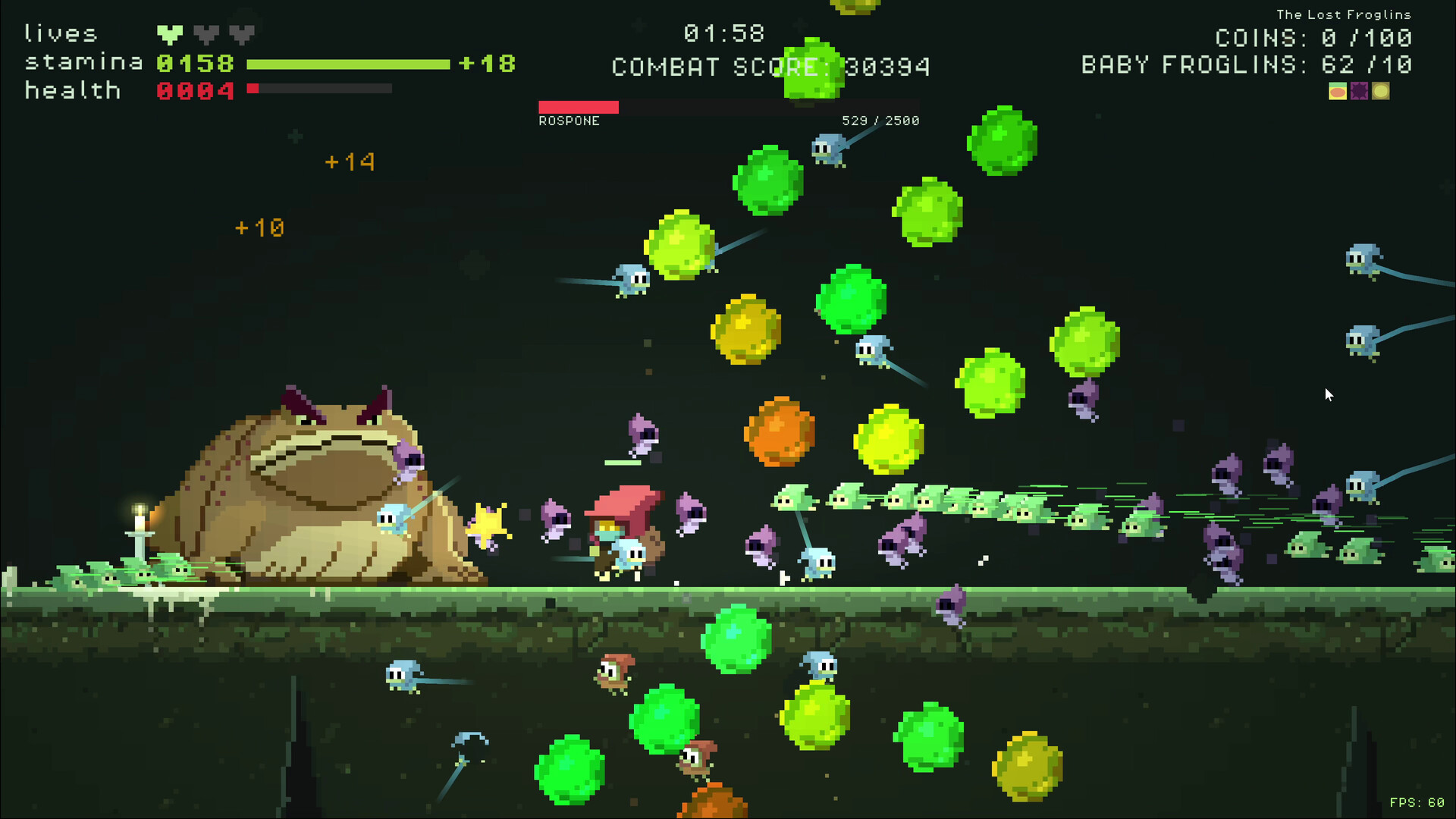 What if Vampire Survivors was a platformer? 100 lost baby froglins are trapped in a cave. Every one you save joins your swarm and fights for you. One is cute. Ten is trouble. A hundred is unstoppable. Die, upgrade, go again.