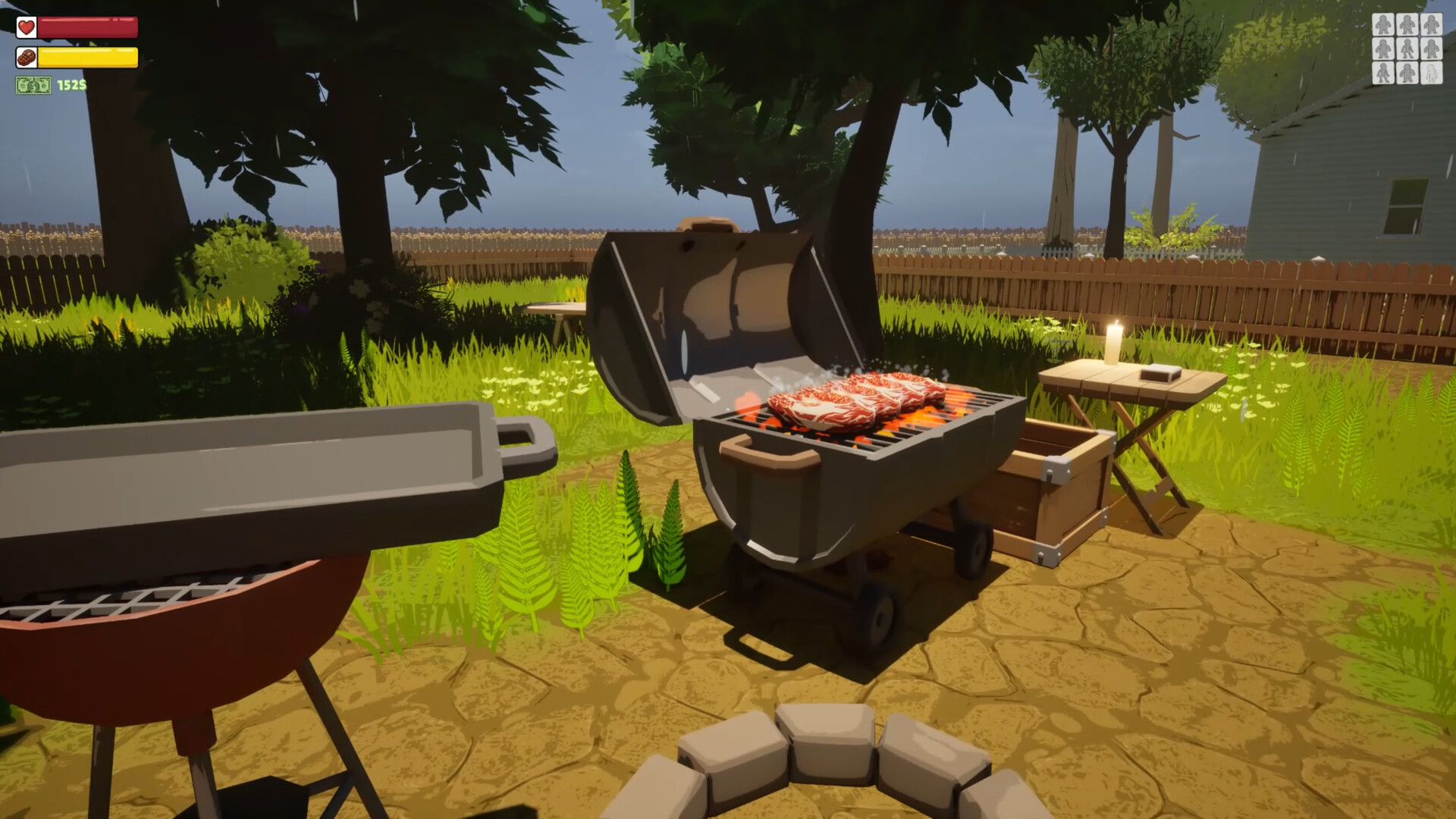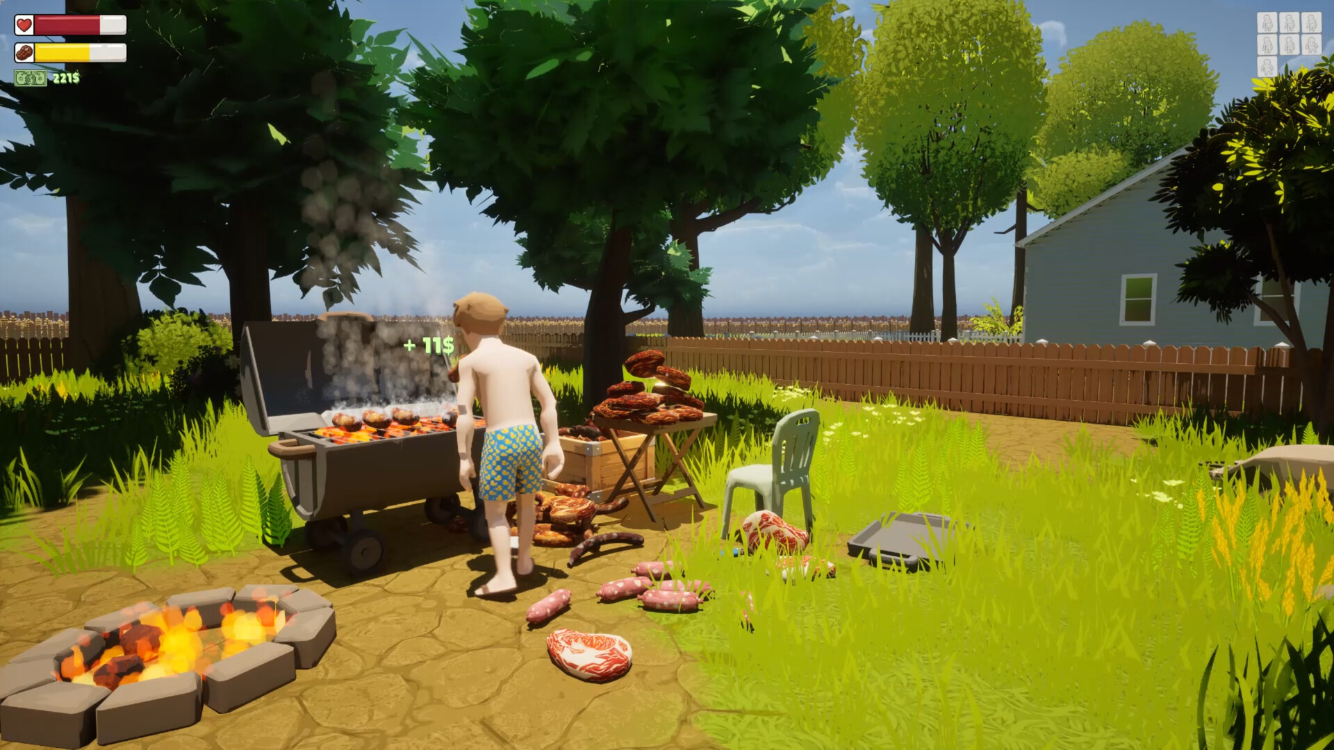 Light the fire, grill the meat, serve your guests and earn money to upgrade your setup.