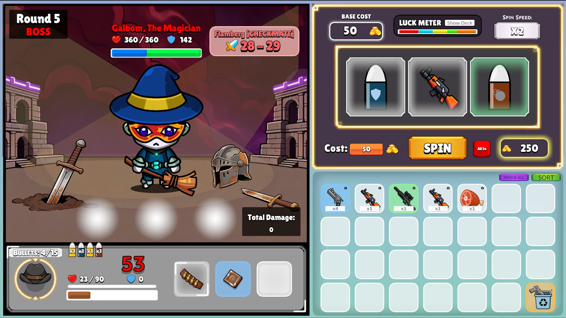Jackpot Colosseum is an addictive arcade roguelike where you construct a custom slot machine to obliterate waves of cartoonish enemies. Spin to generate wealth, deal damage, and trigger chaotic chain reactions.