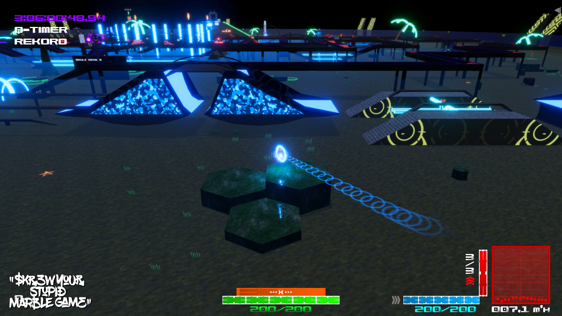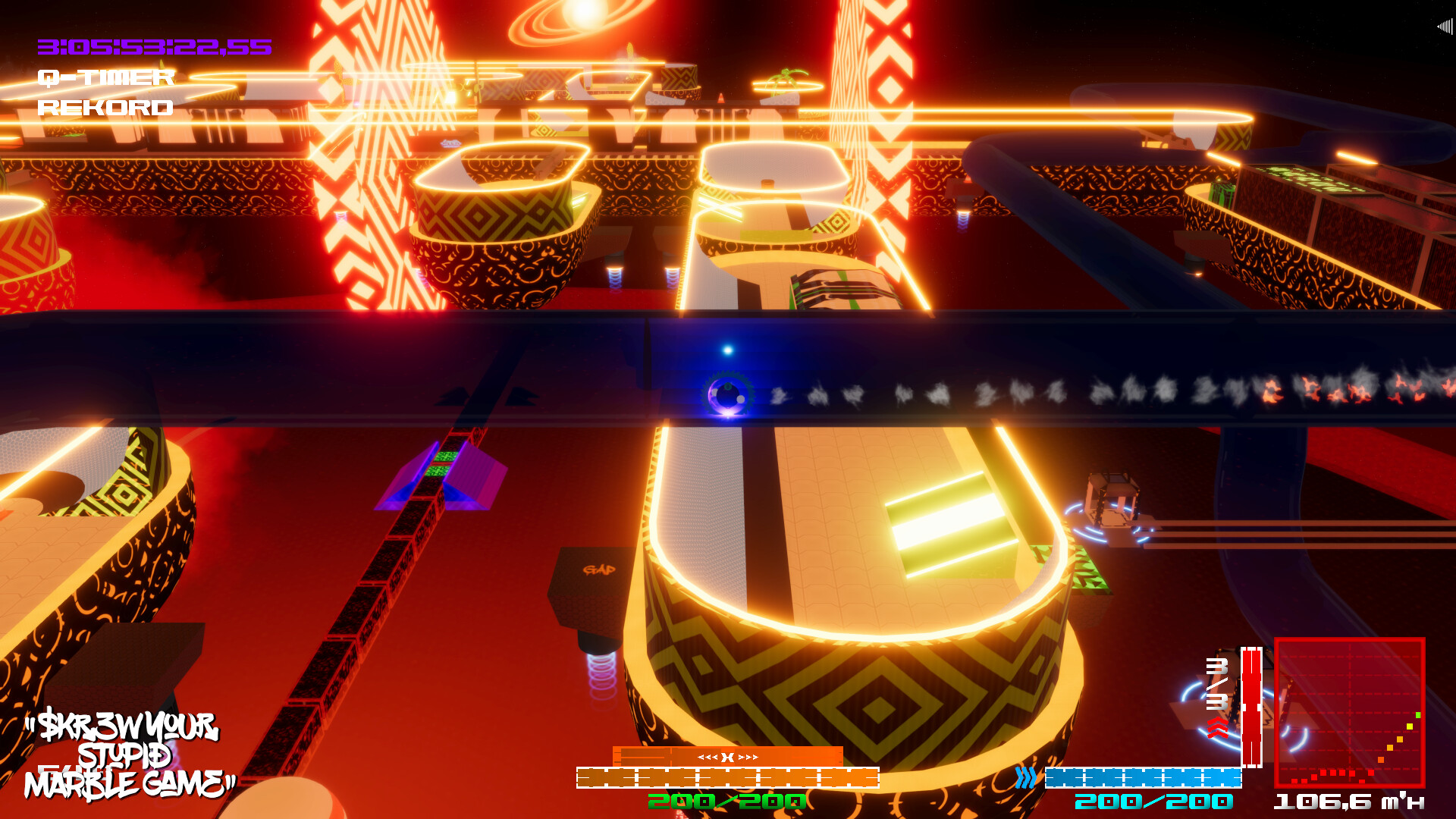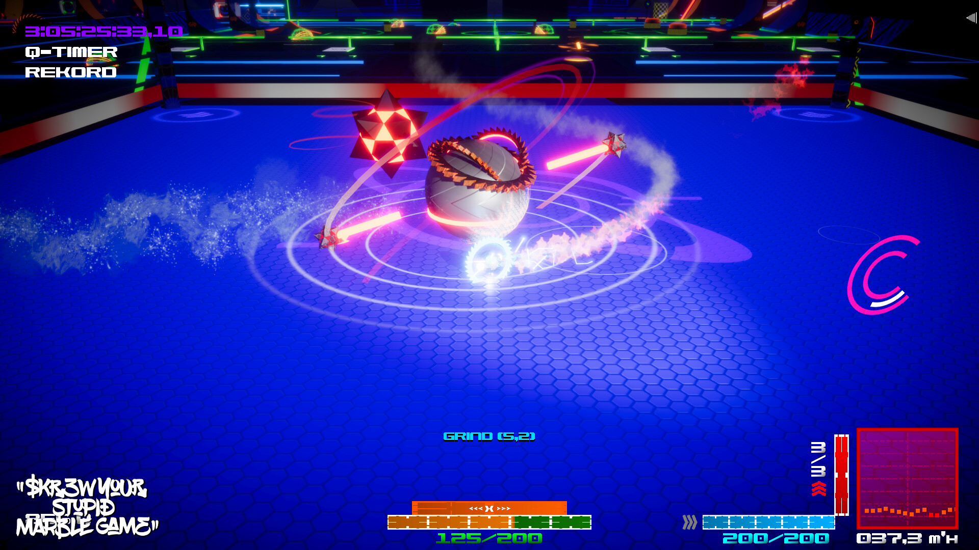 You play as a digital marble consisting of a force field and a cockpit. You roll through over 100 levels, completing a huge variety of missions. You'll have to race, knock down bowling pins, break skatepark high scores, capture opponents, solve puzzles, help NPCs, and much more.