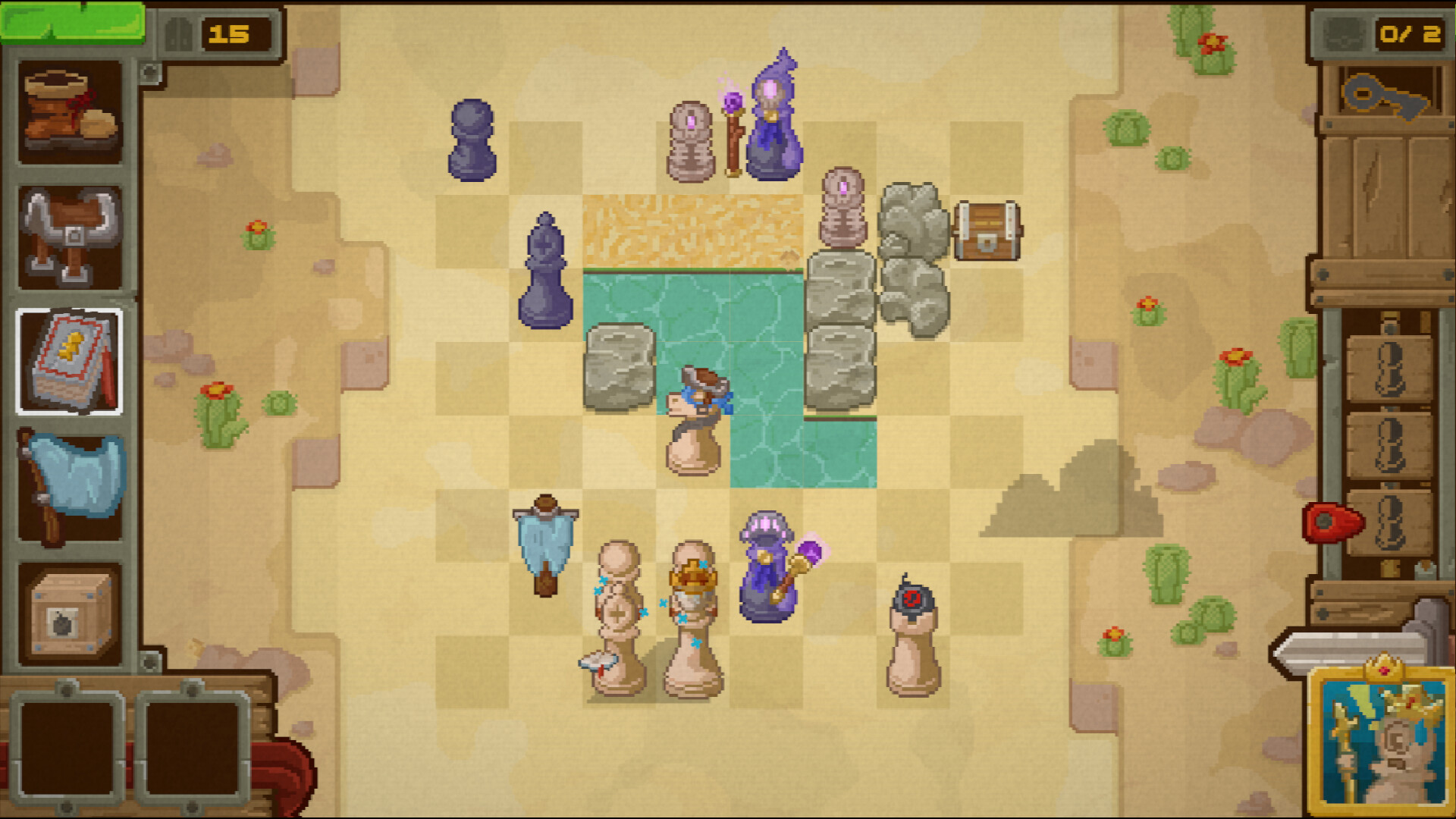 Throughout the game you will come across different rooms, each with their own special environments. From grass that hides the type of piece that's in it, to quicksand that swallows your pieces & even minibosses with their own armies.