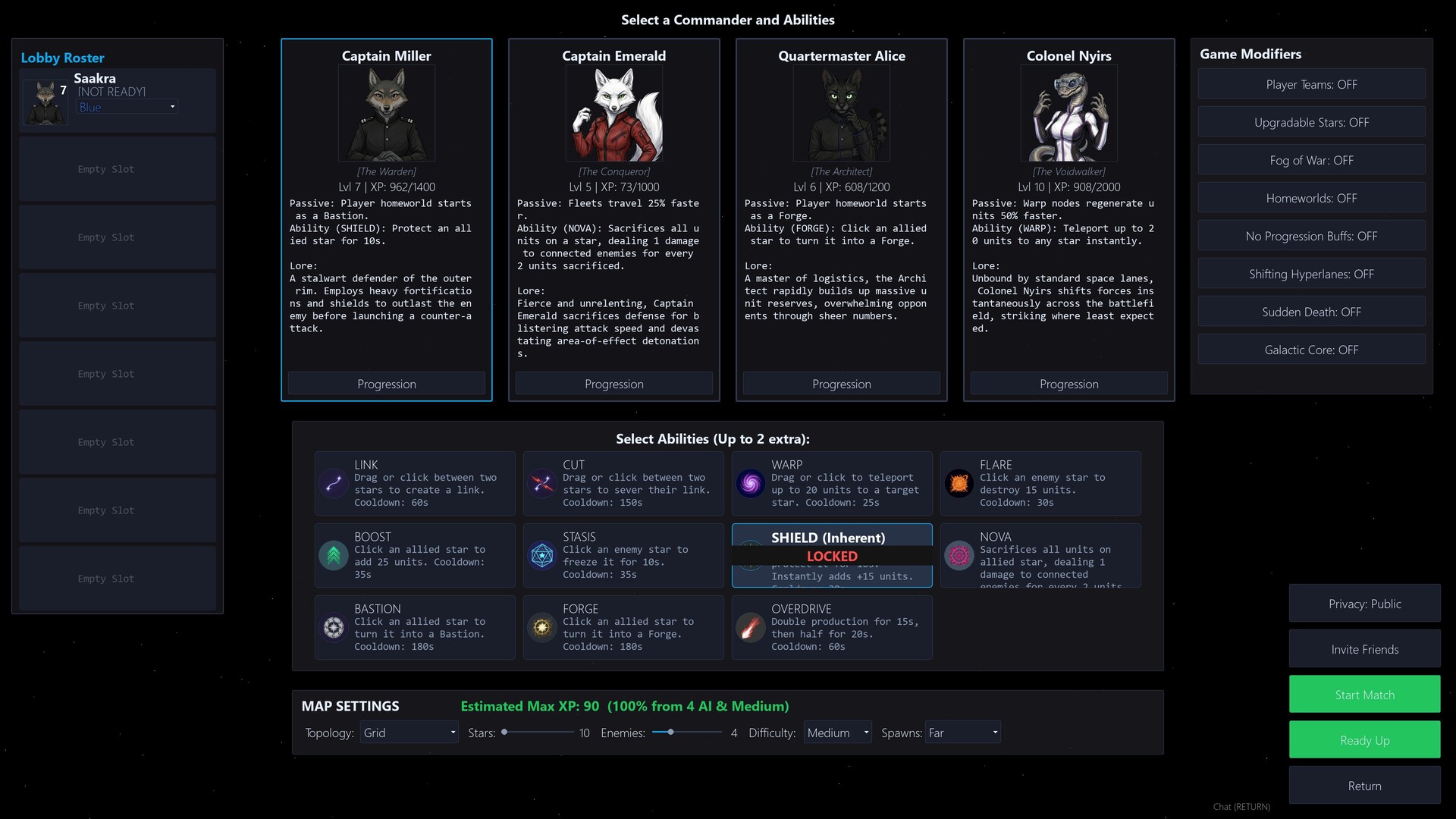 Win or lose, every battle earns you XP. Level up your chosen Commander to unlock permanent, account-wide skills that augment your playstyle. Progress through a 10-level skill tree for each Commander to unlock passive buffs, reduce ability cooldowns, and unlock special boons and effects to your commander's unique ability. Customizing your loadout before a match is just as important as the battle itself!