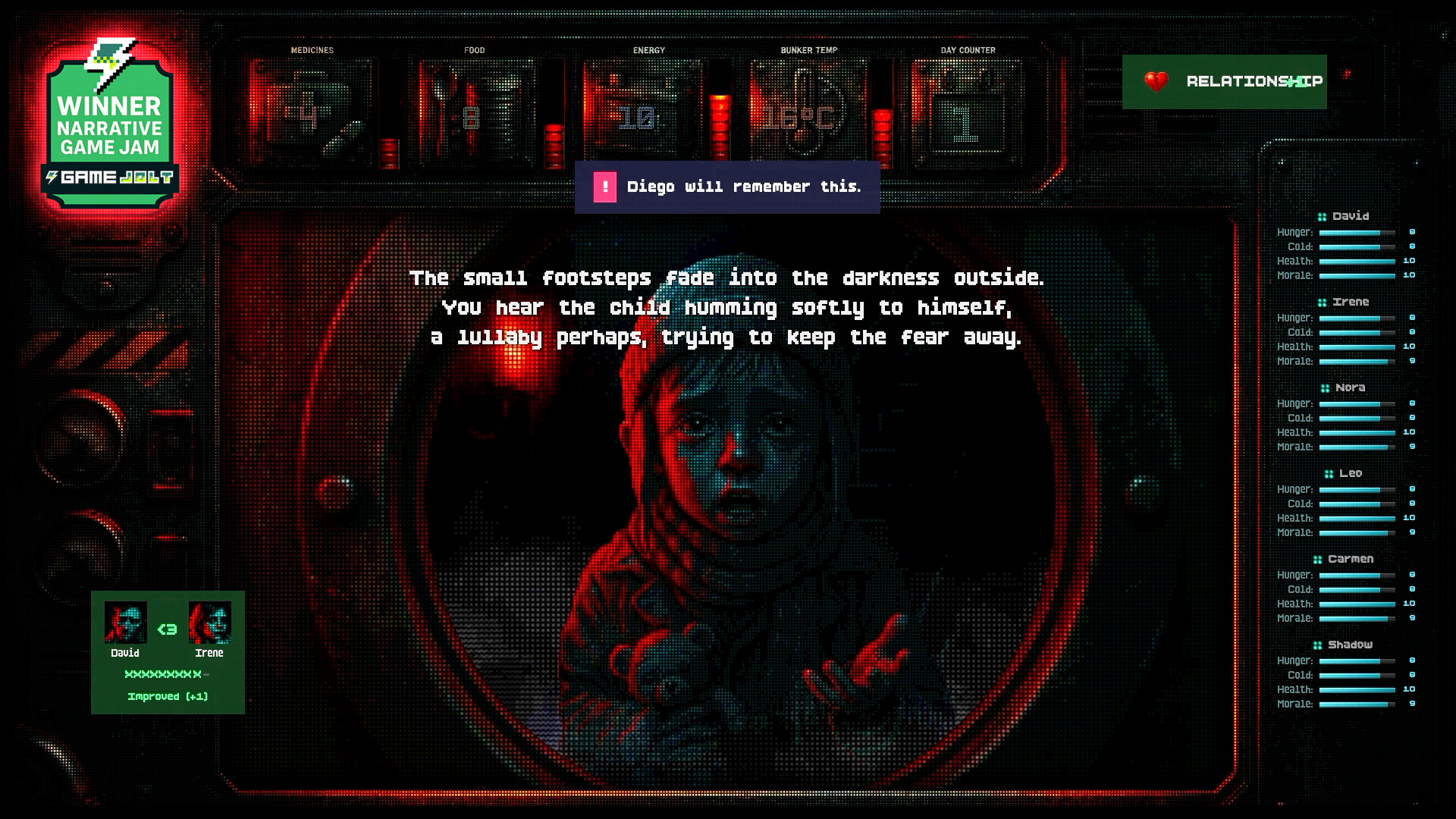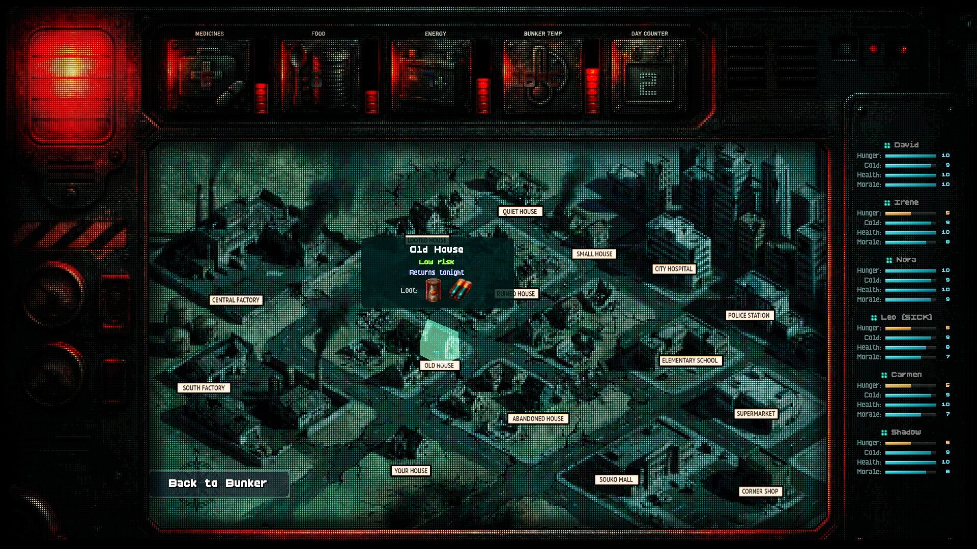 Now you manage what's left. Food. Medicine. Energy. Morale. Sanity. There's never enough of anything, and someone always goes without.