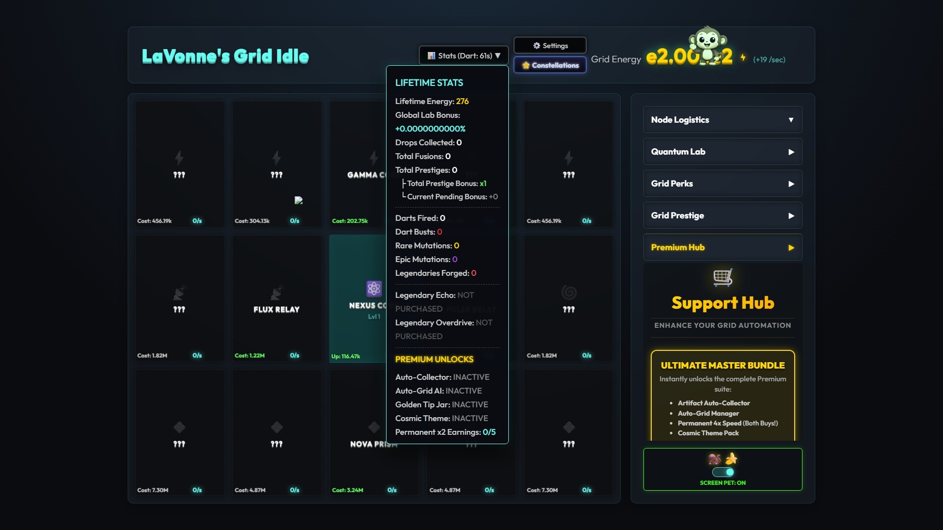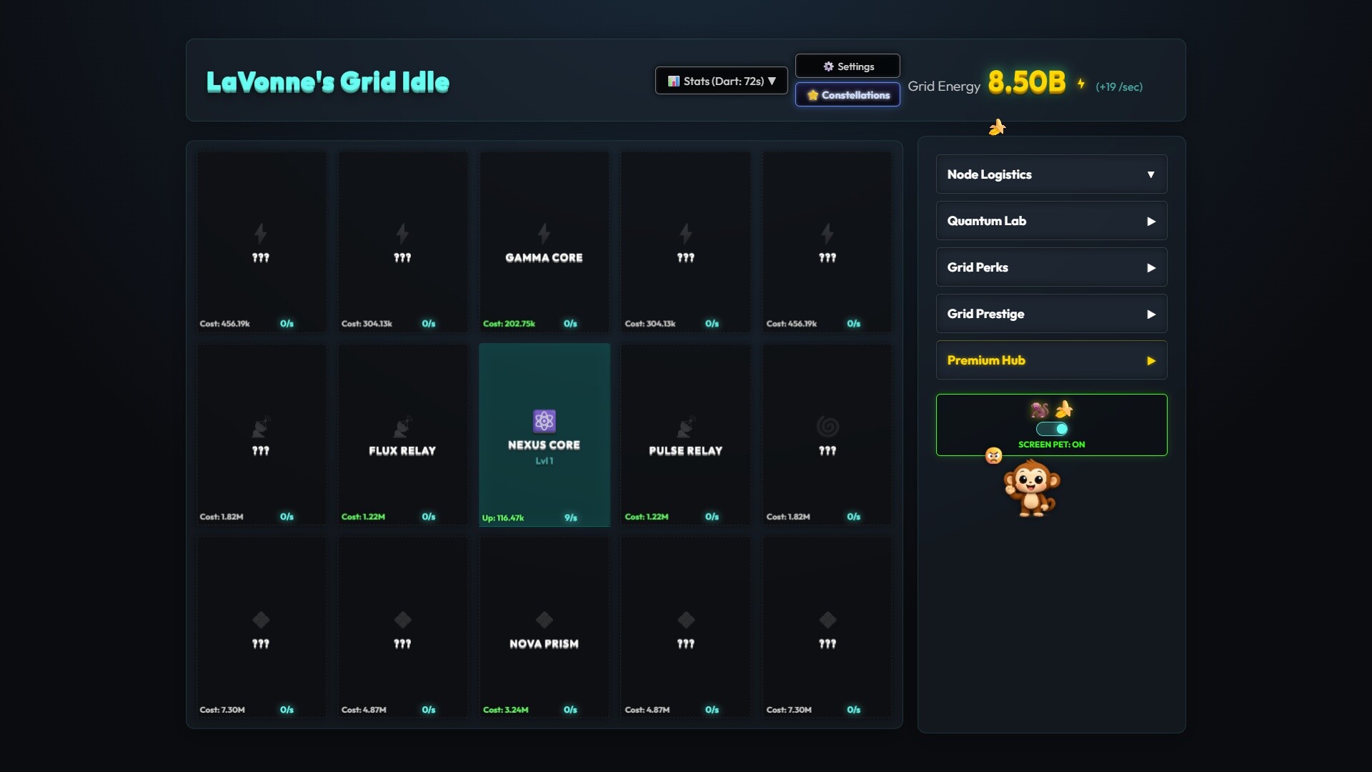 Immerse yourself into a raw, exponential numbers game that respects your time. LaVonne's Grid Idle relies on advanced mathematical scaling to allow your tech trees to infinitely cascade without hitting standard hard caps.