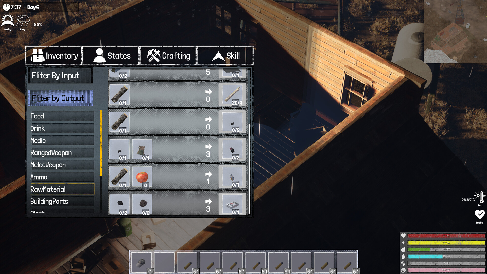 Choose to be a scavenger prowling the remains of the old world for rare supplies and components, or retreat to the hills to sustain yourself through farming, gathering, hunting, or fishing. Manage your hunger, thirst, and wounds carefully — in this world, there is no one to care for you when you fall ill.