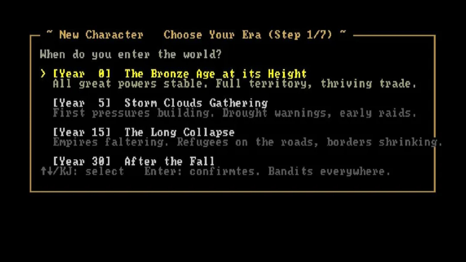 Civilizations are not static backdrops. They manage food supplies, suffer famines, wage wars, form alliances, impose vassalage, and collapse under the weight of their own instability. Rulers are born, age, die, and are succeeded. Bandit bands roam the countryside when states weaken. Sieges unfold across seasons. The world ticks forward whether you engage with it or not.