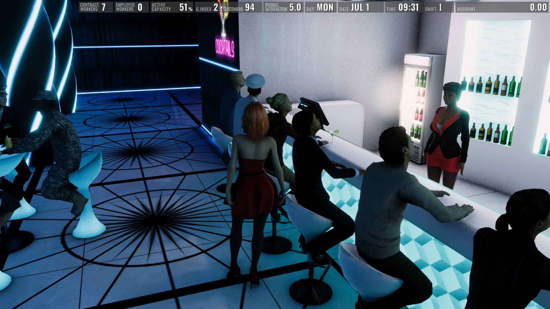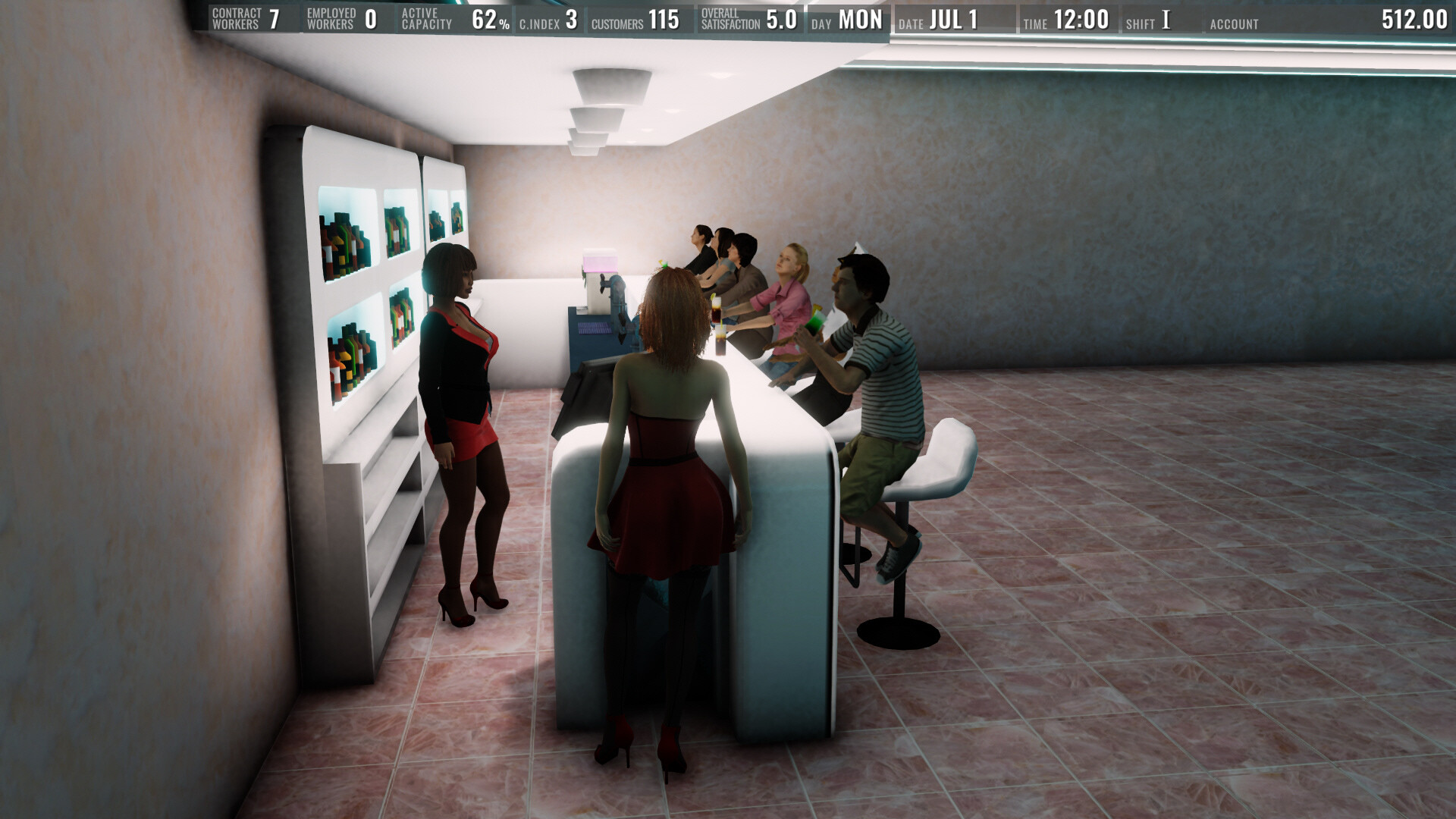 The entire facility operates 24/7, and it is up to the player to organize the employees' work schedules, order supplies, and monitor the operation of the entire facility. The game has no breaks and the entire plot, including the sex scenes, takes place in parallel with the operation of the facility.