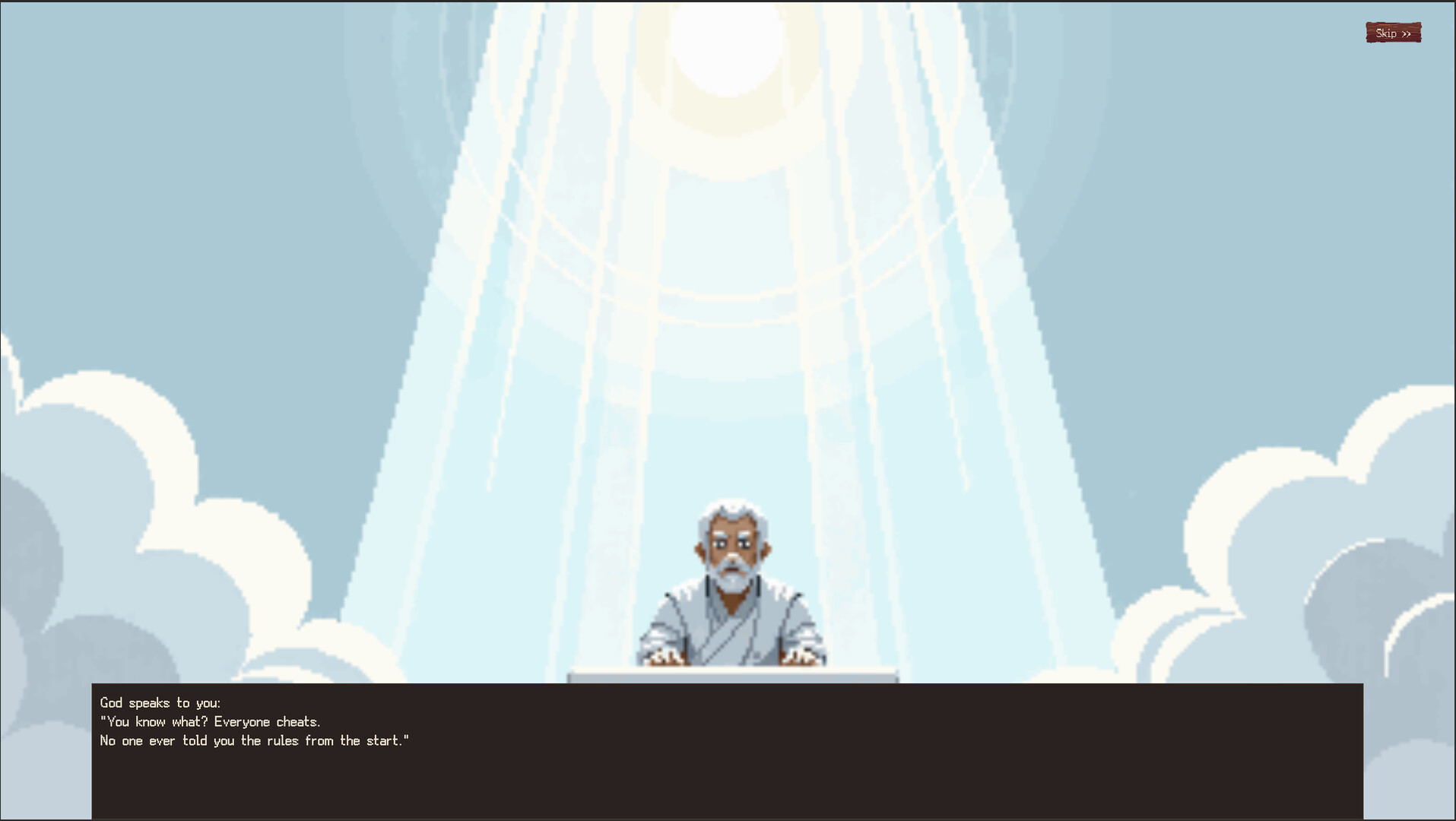 On your deathbed, God shows up: "Truth is—everyone who ever won was cheating."