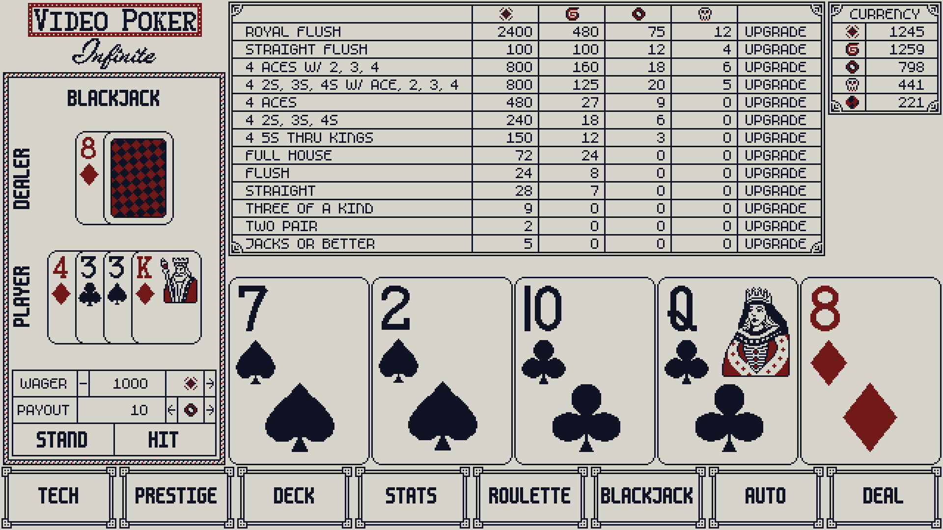 Activate Auto Mode to continue raking in profits while you upgrade your technology, modify your deck, play blackjack, or work on another monitor.