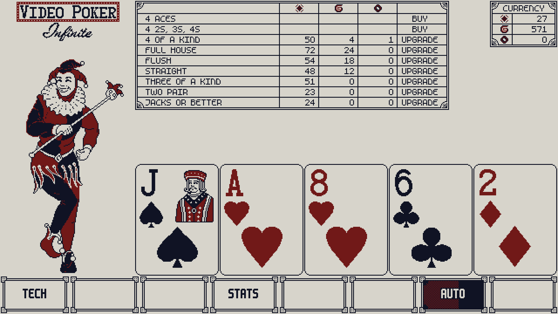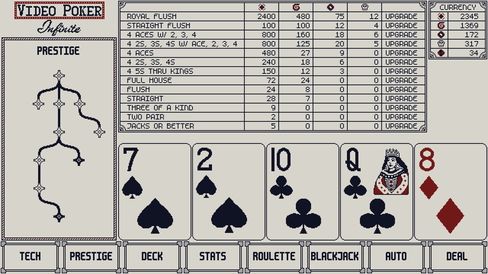 Pursue several upgrades paths across multiple tech trees and a full pay table.