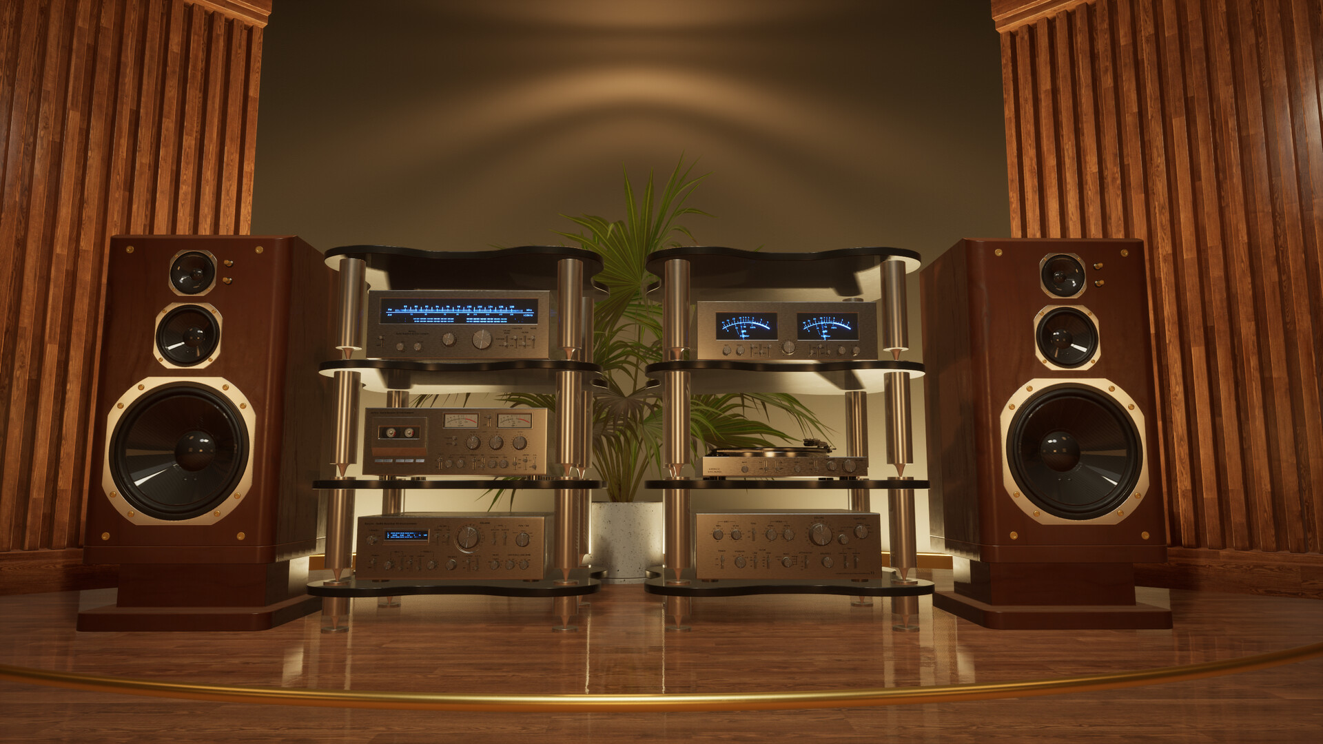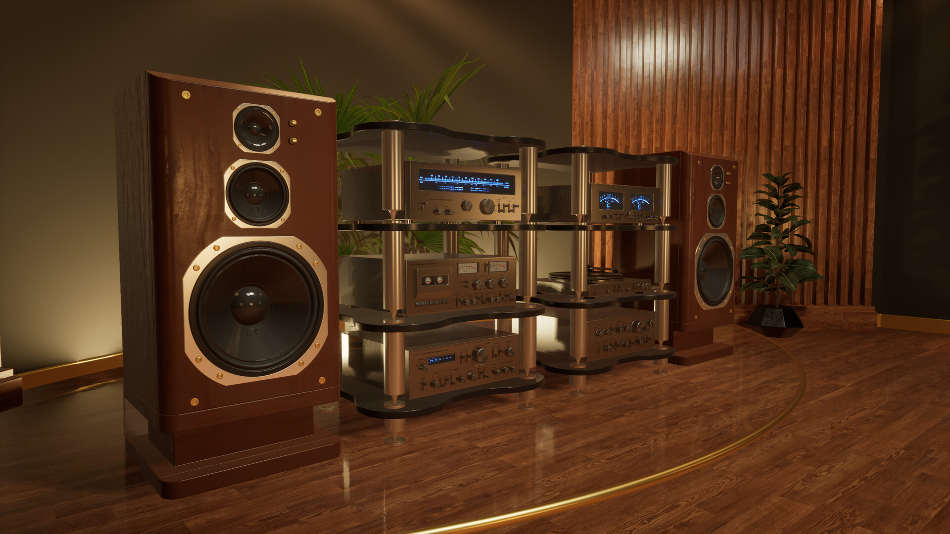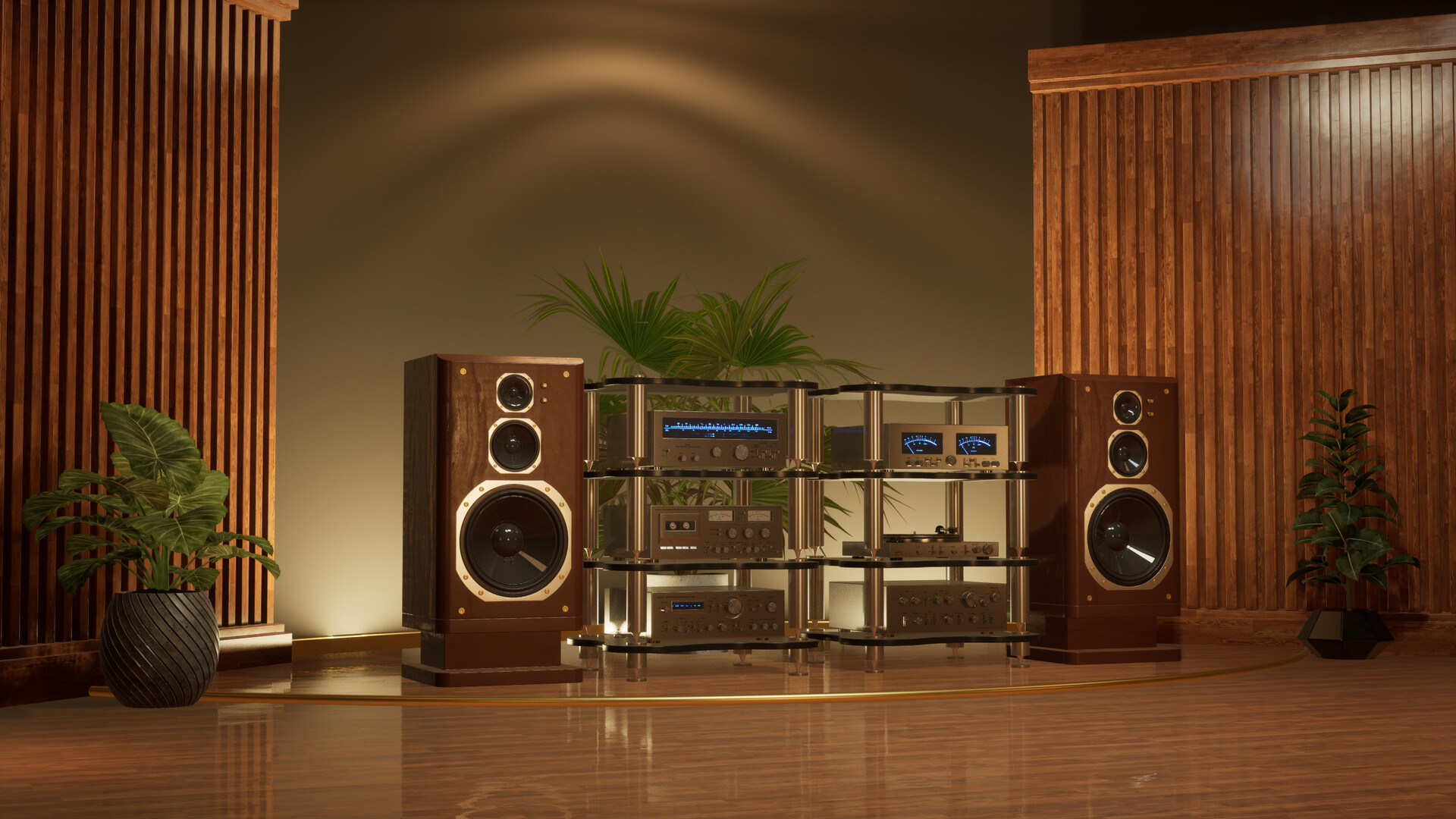 Aurenv uses the audio signal that is going through the Default Playback Device of your Windows to animate various elements within 3D environments such as speaker drivers, vu meters, lights and more.