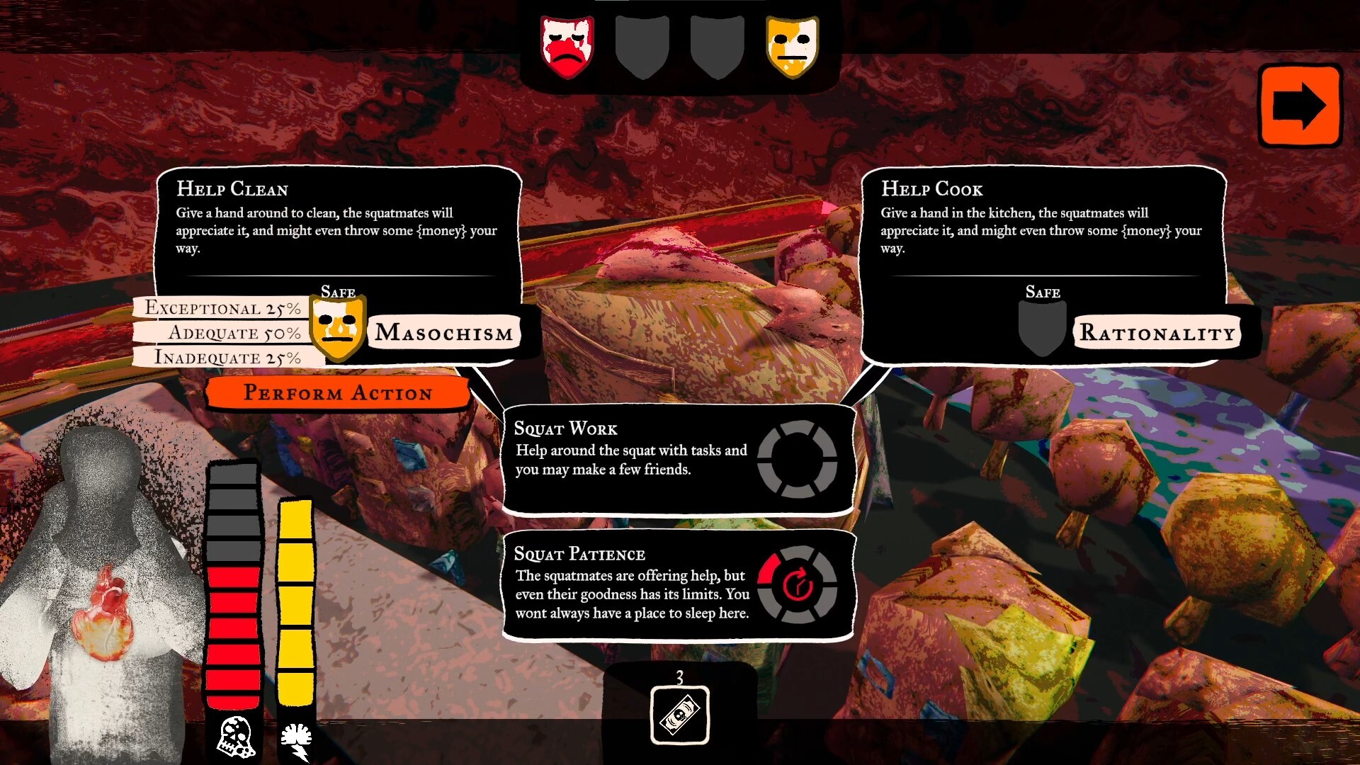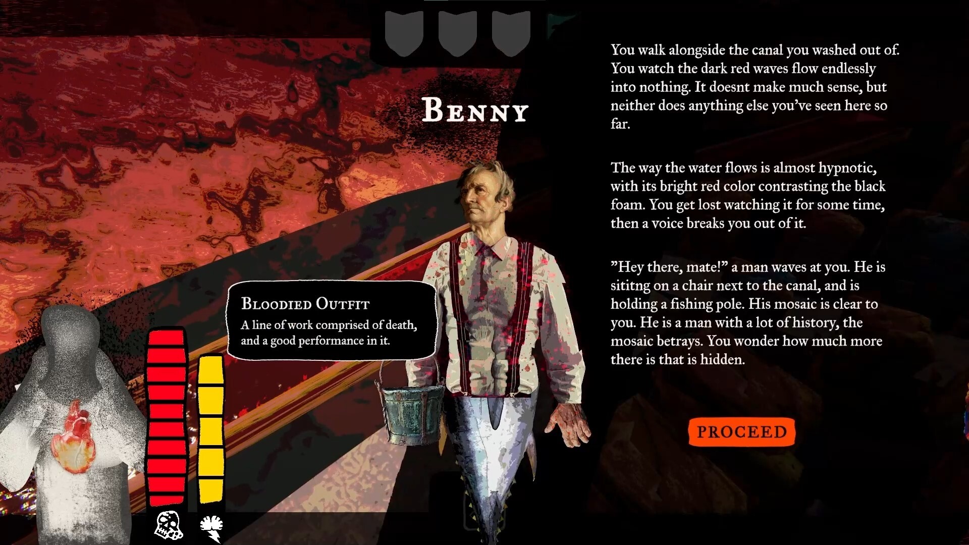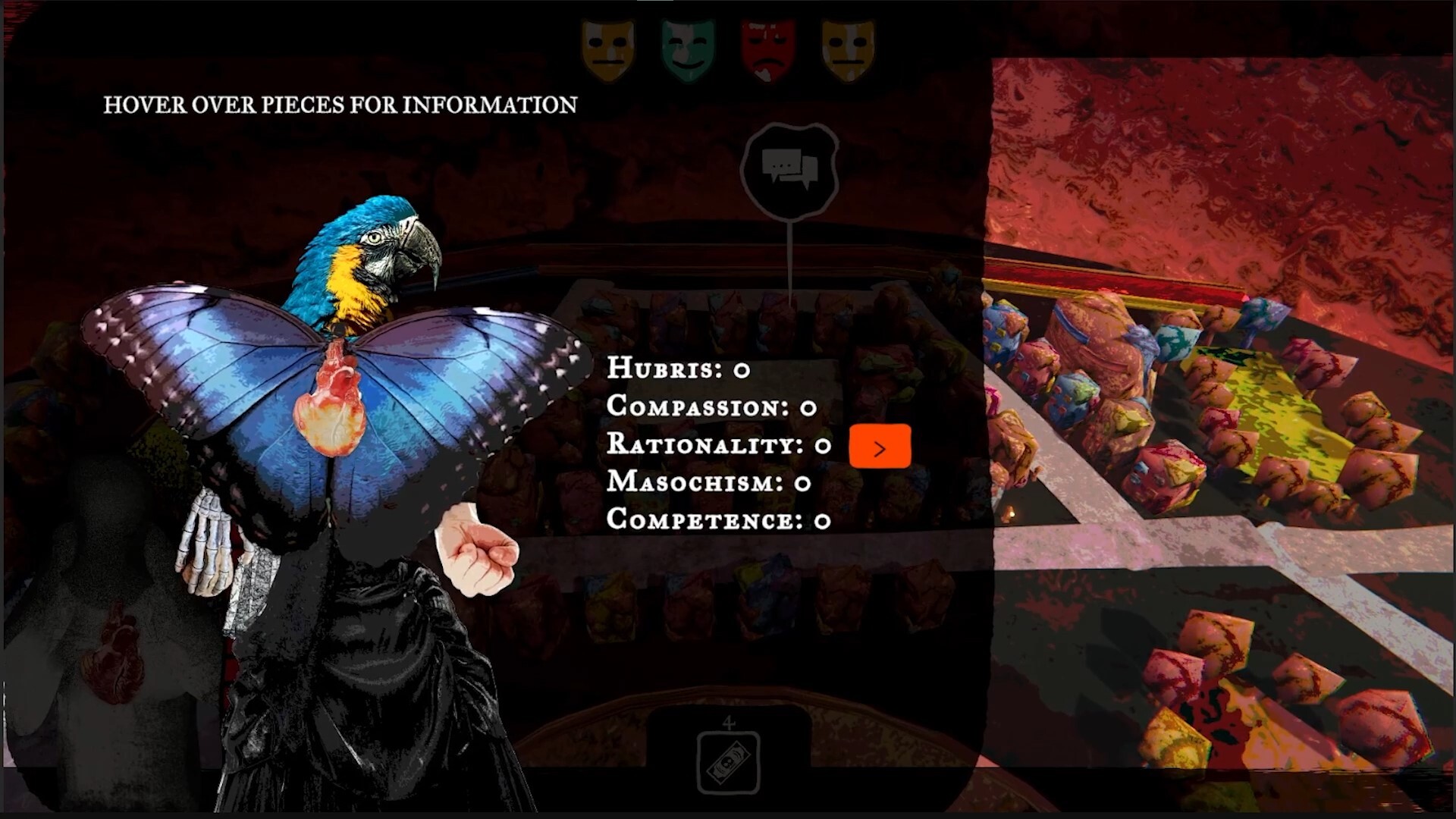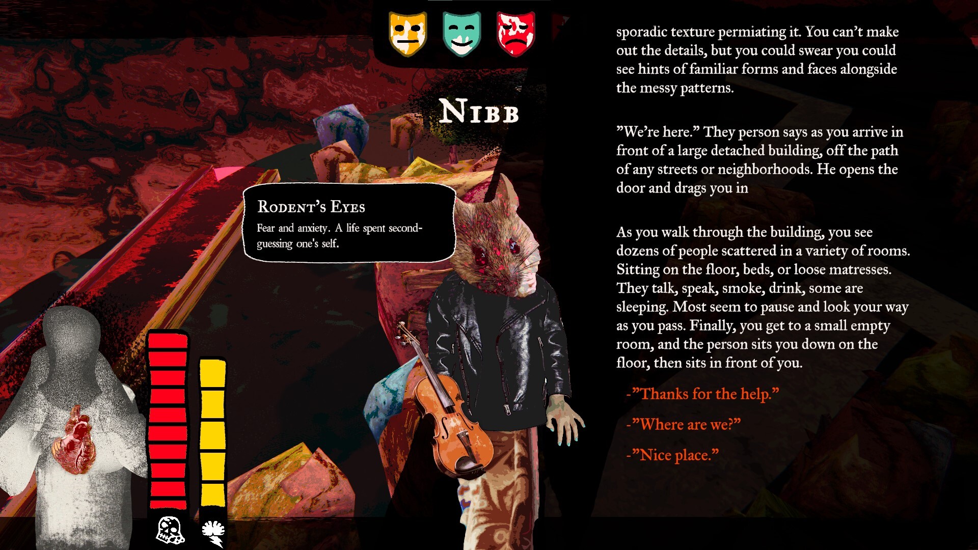 In Visceria, your appearance is shaped by your past. As a faceless, your past has been erased. Through surviving in this hellish city, you will meet characters and make choices that will shape you, developing your personality, appearance, and abilities.