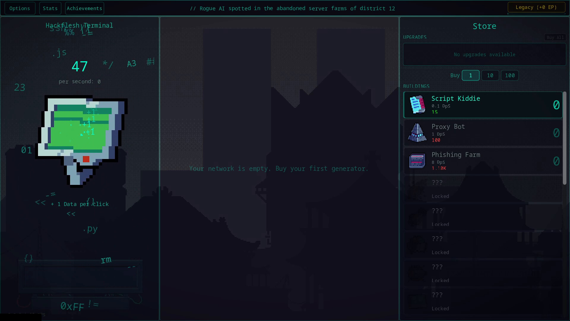 Hackflesh에서 모든 클릭은 시스템에 데이터를 주입한다. 모든 제너레이터는 새로운 보안 레이어를 뚫는다. 모든 업그레이드는 현실을 부수는 데 한 걸음 더 다가간다.