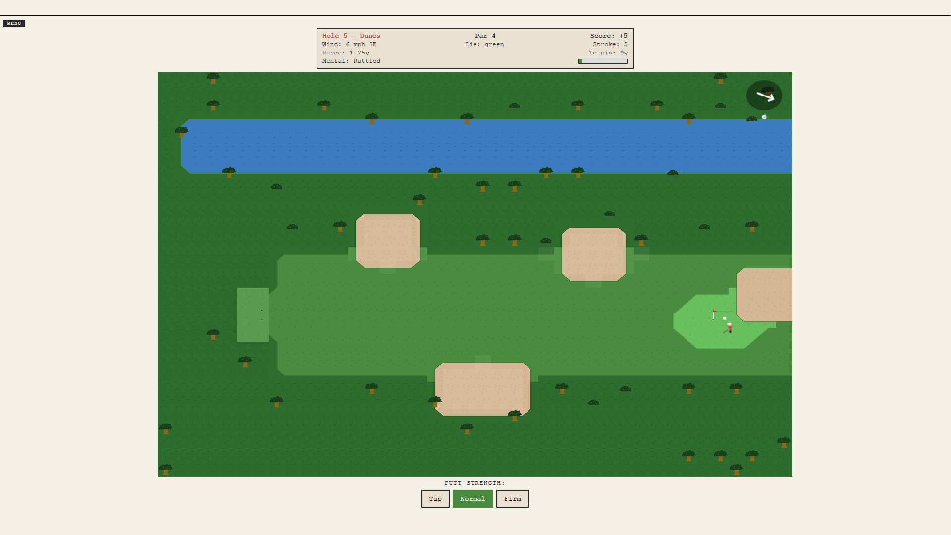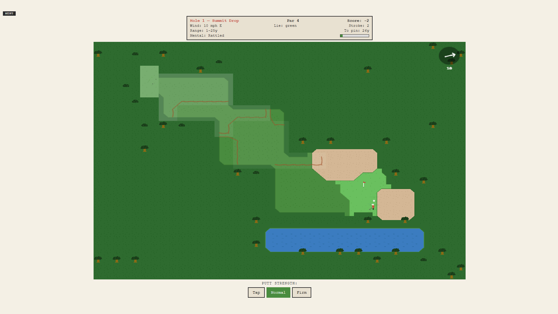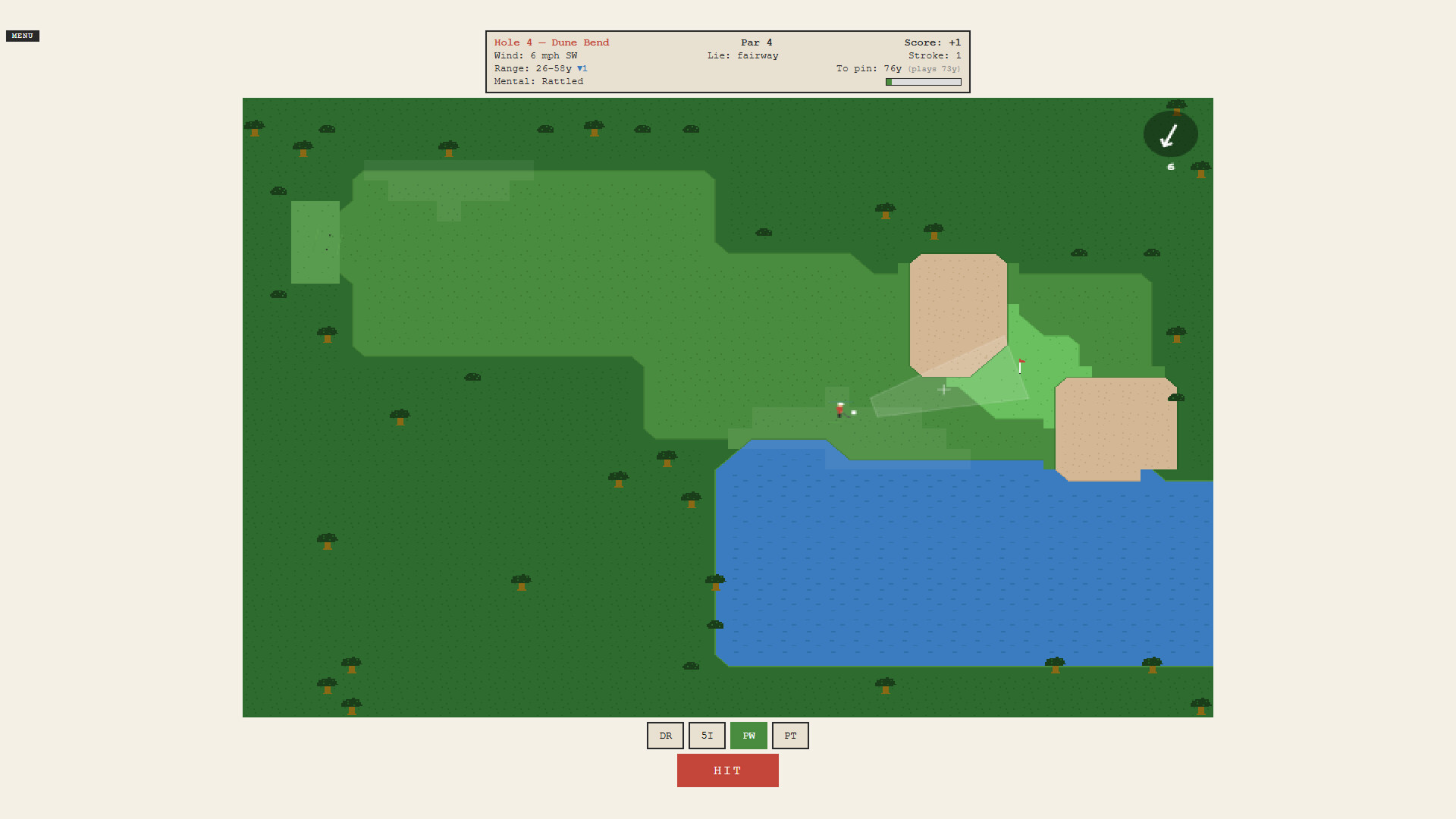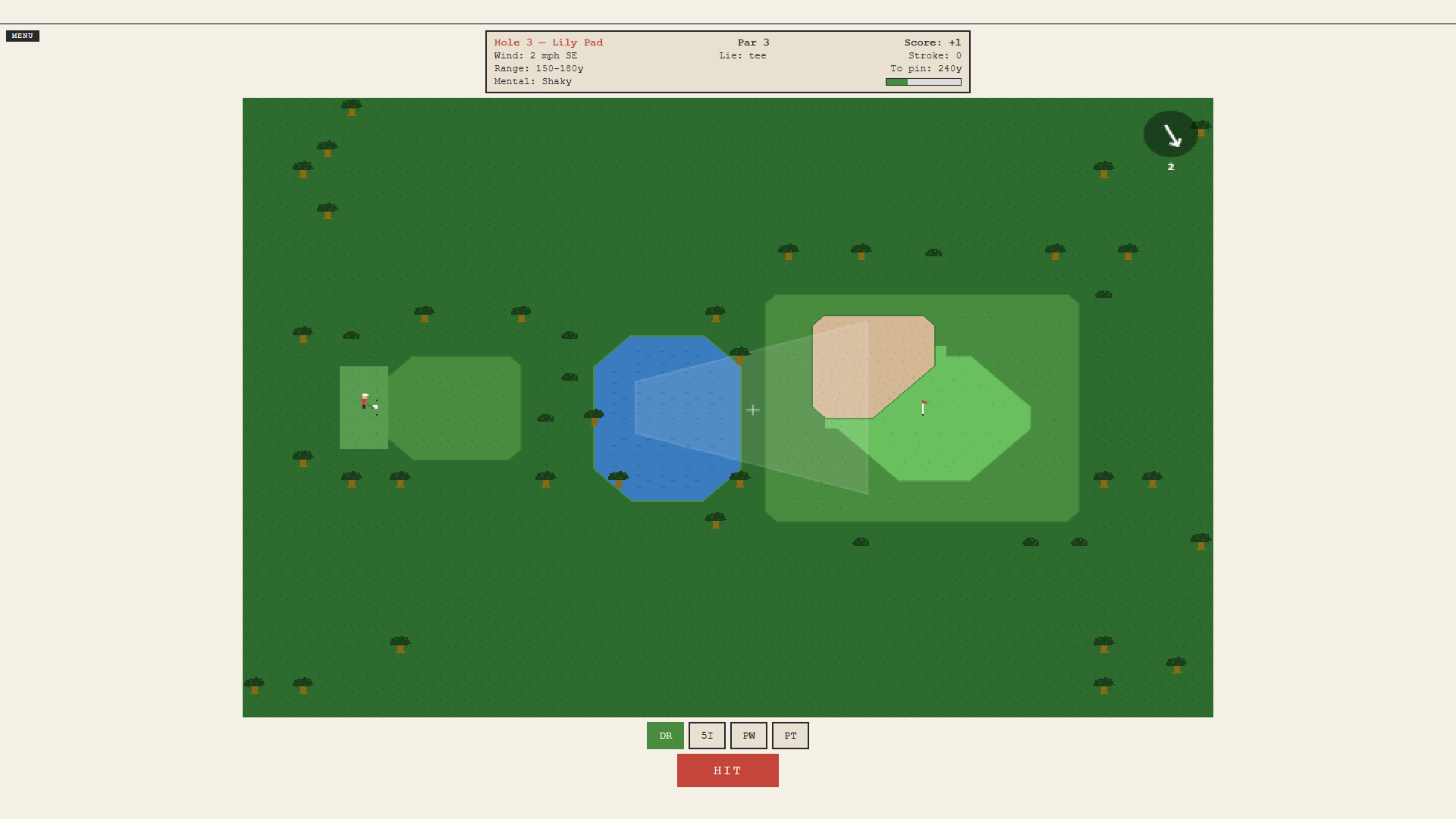 CADDIE is a pixel golf game stripped back to its purest decision: which club do you pull from the bag? Every hole is a puzzle of distance, wind, terrain, and your player's current form. Choose wisely and watch the ball arc toward the pin. Choose poorly and you're fishing it out of the water.