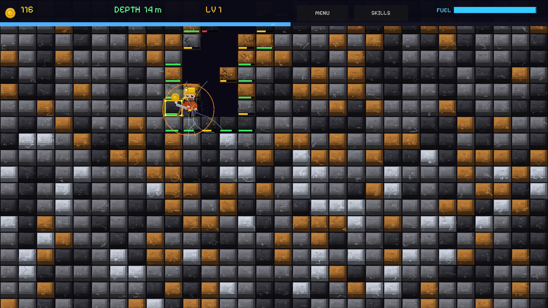 초반에는 모든 것이 느리고 어렵다. 흙을 파고, 철을 모으며, 힘겹게 버틴다. 하지만 한 미터 내려갈 때마다 조금씩 더 강해진다. 더 좋은 장비, 더 빠른 채굴 속도, 더 높은 지구력.