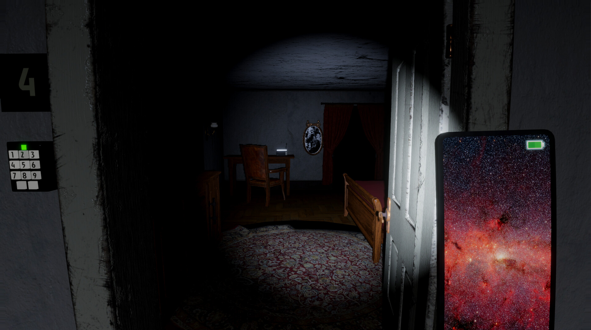 The game features an integrated UI system within an in-game smartphone, which functions as a tool throughout the experience. It can be used for tasks such as navigating the environment, receiving information, and acting as a flashlight in dark areas.
