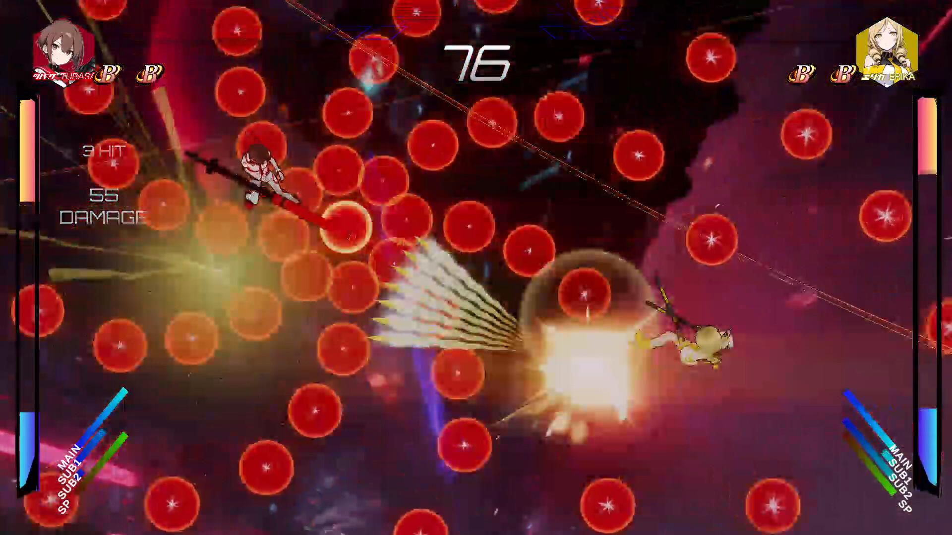 There are no complex command inputs. With just a single button, each character unleashes unique bullet patterns while players focus on movement, evasion, and energy management to outplay their opponent.