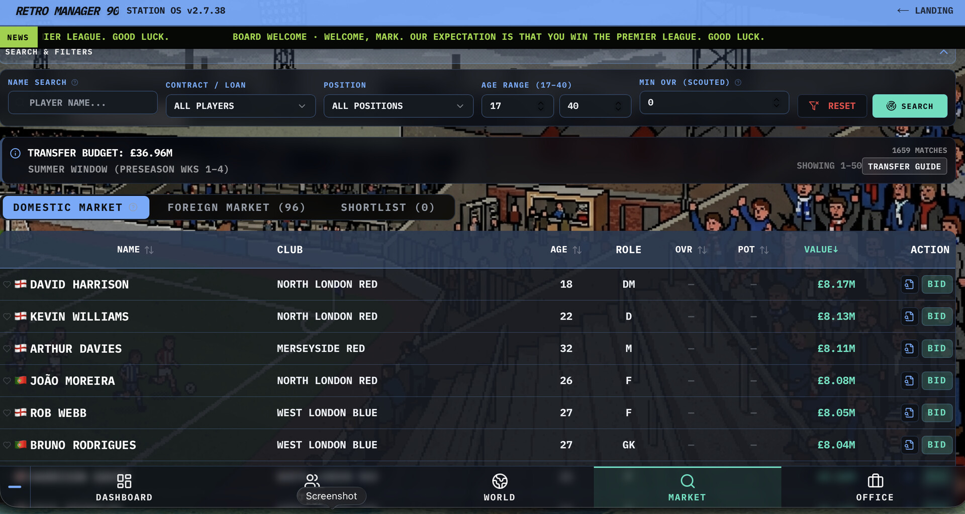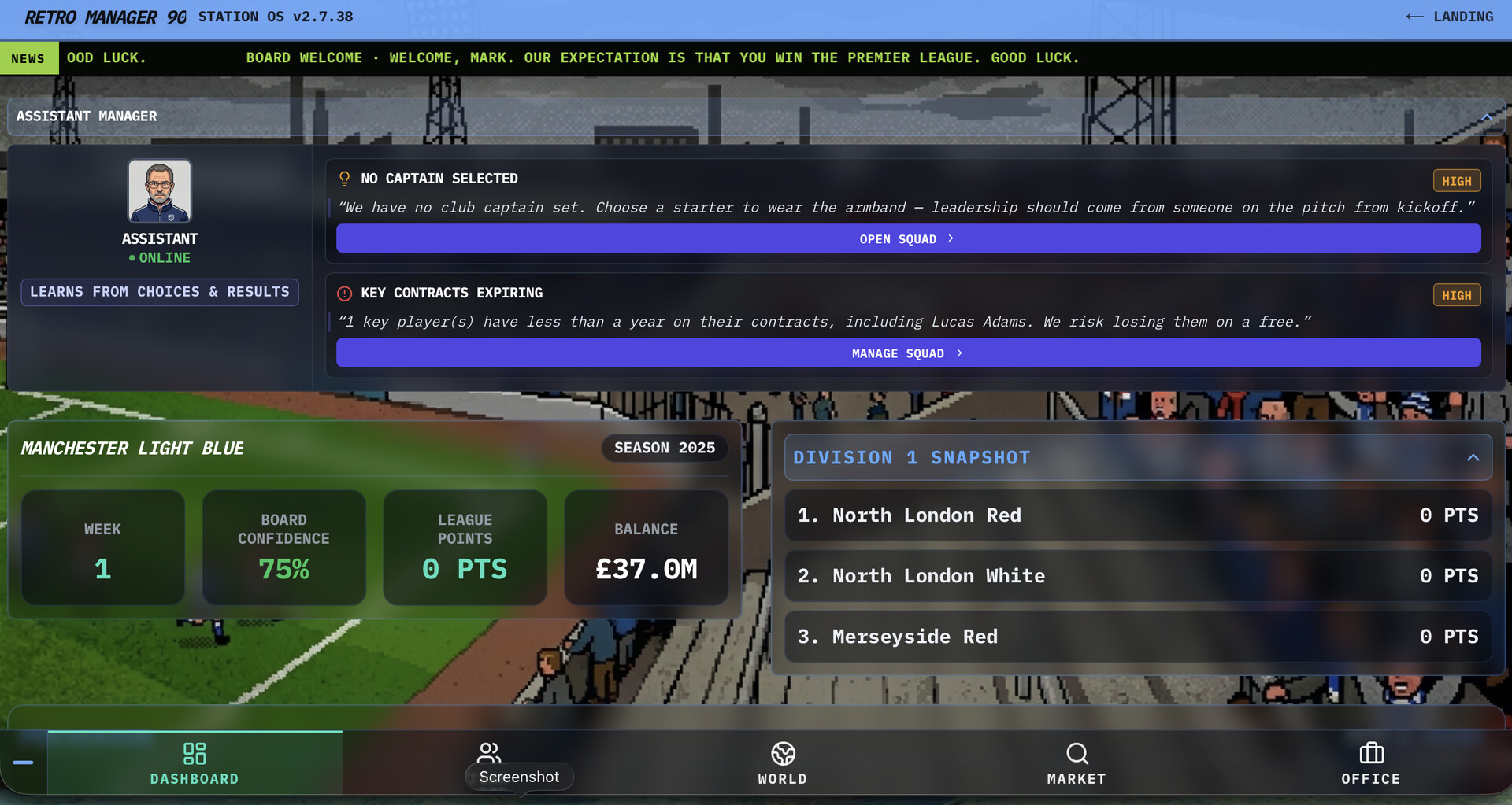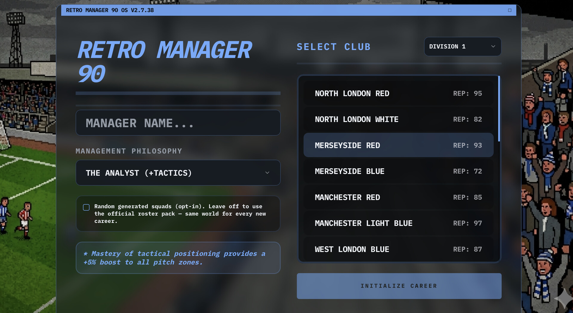 Retro Manager brings back the golden era of football management — stripped down, fast, and addictive.