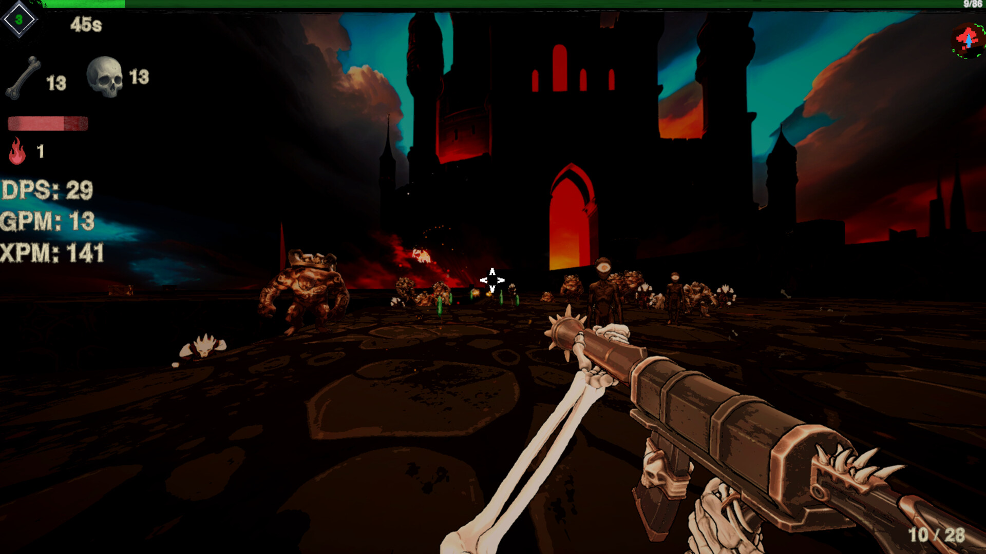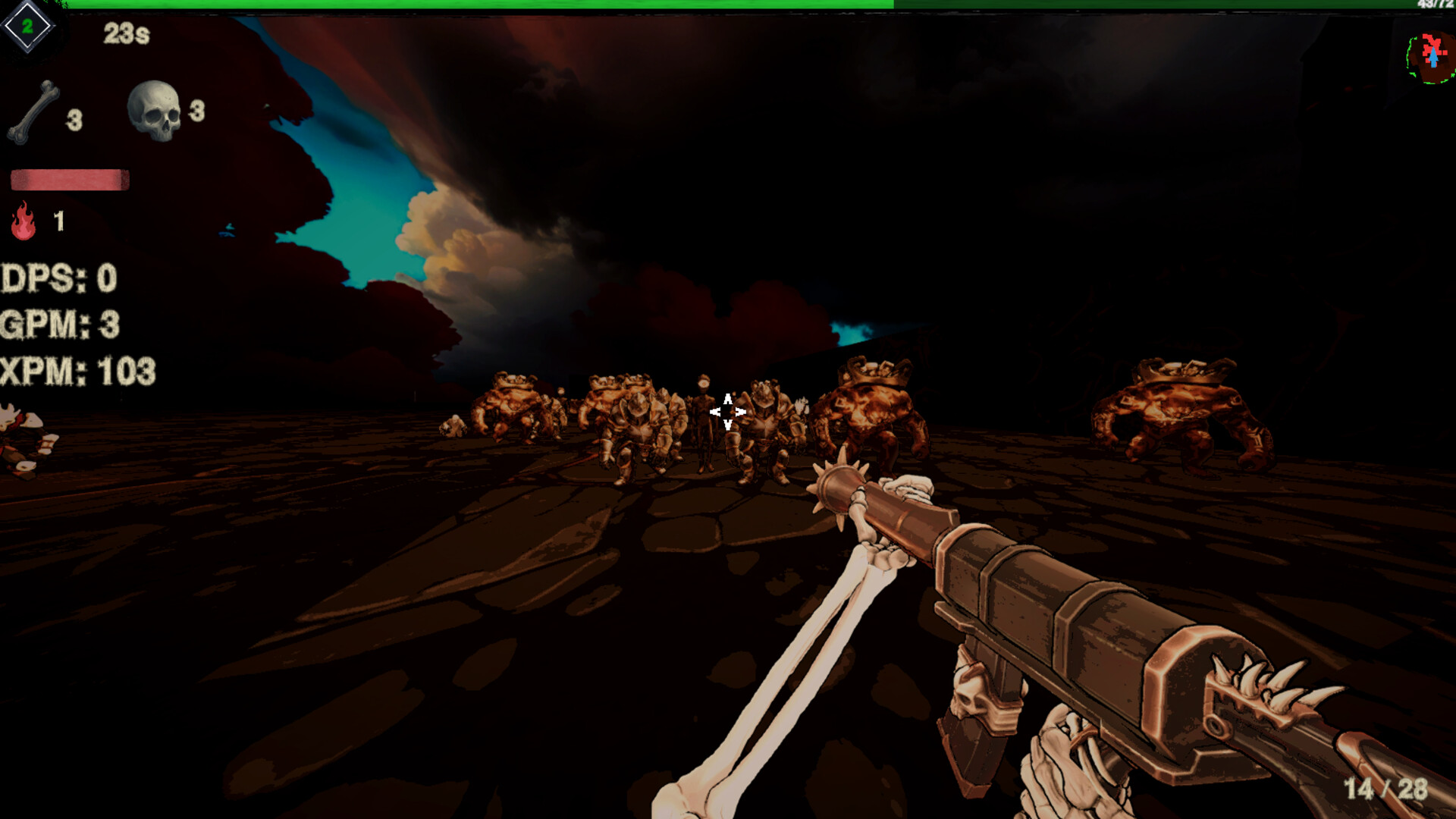 A first-person bullet heaven survival shooter set in a relentless Hellscape where overwhelming enemy hordes never stop coming. You are dropped into arenas filled with demonic forces and must fight to survive as the intensity escalates over time.
