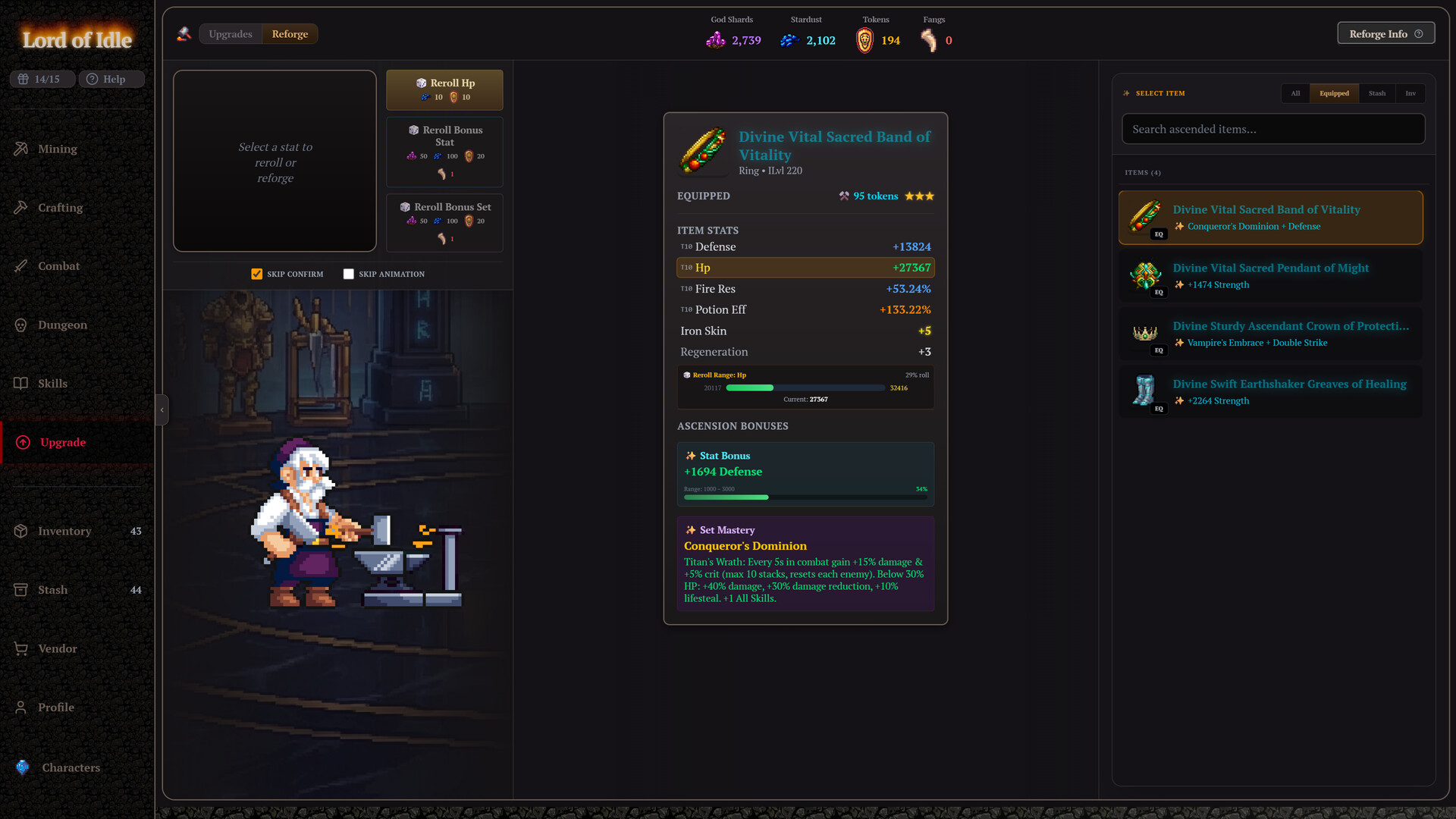 Reforge & Re-roll: Don't want to rely entirely on drop luck? Once an item is Divinely Ascended, you can target and re-roll specific bonus stats or completely randomize its Divine Mastery to chase the ultimate combination.