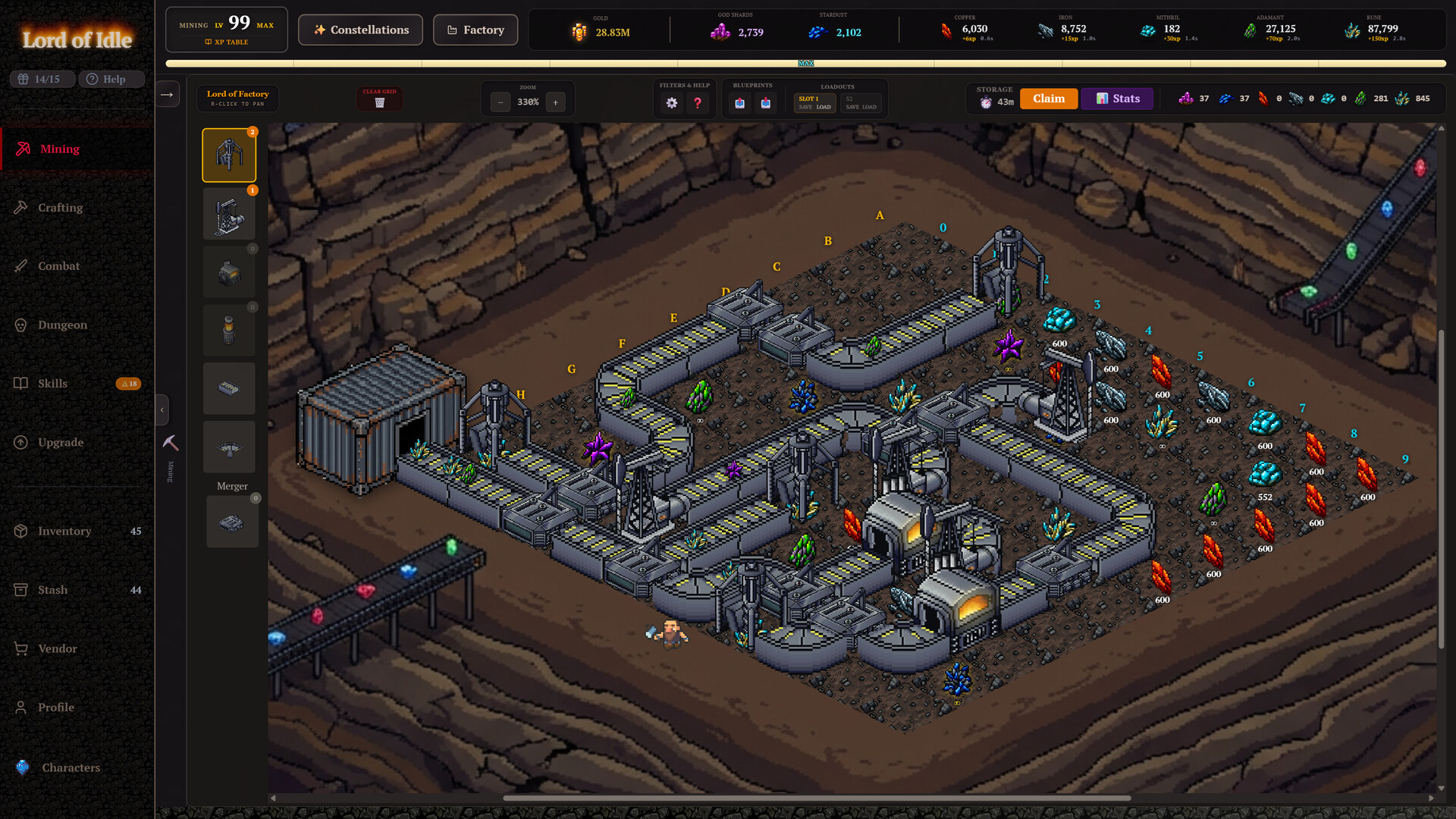 Need a break from combat? Step out of the dungeon and manage a fun, grid-based Isometric Factory.
