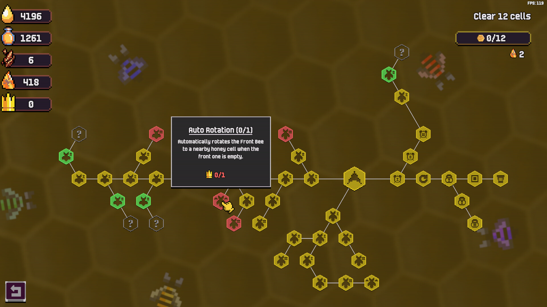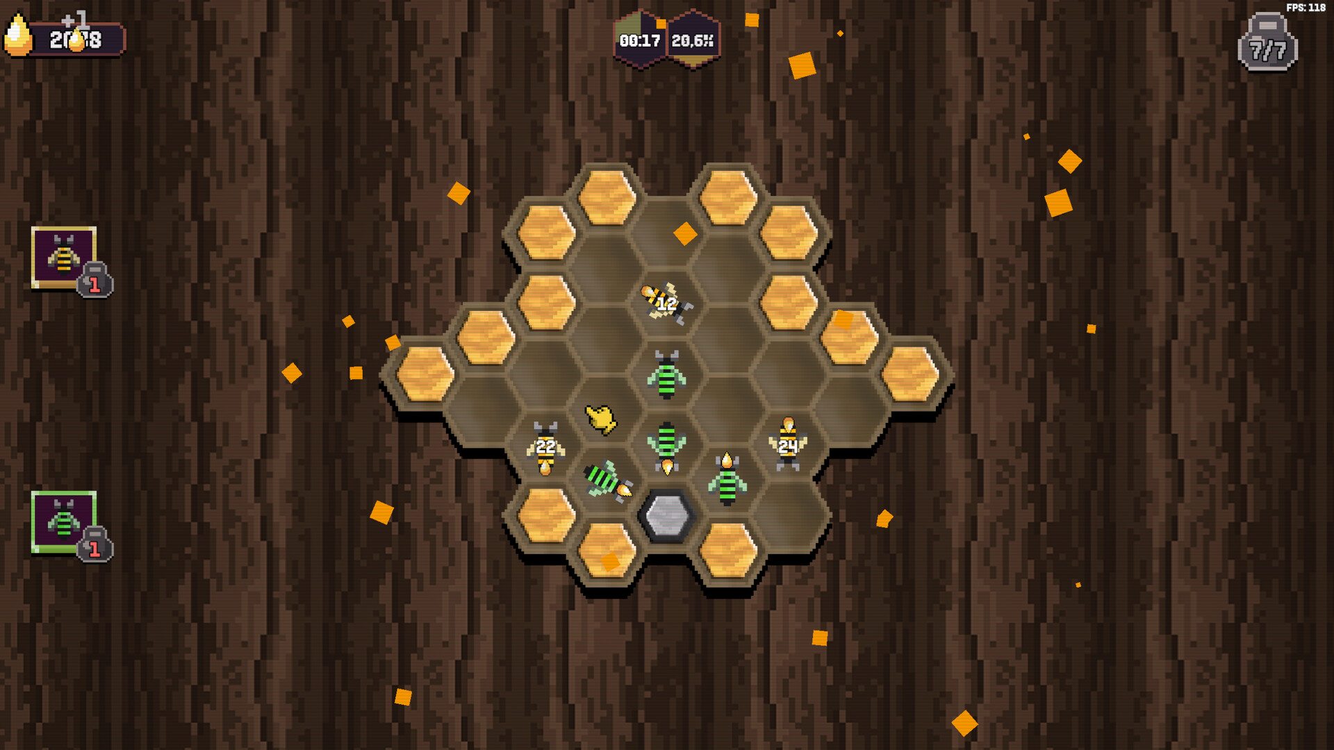 When time runs out, your harvest is not wasted. Spend the resources you gathered on permanent skill tree upgrades that improve your bees and make future runs faster, stronger, and more efficient.