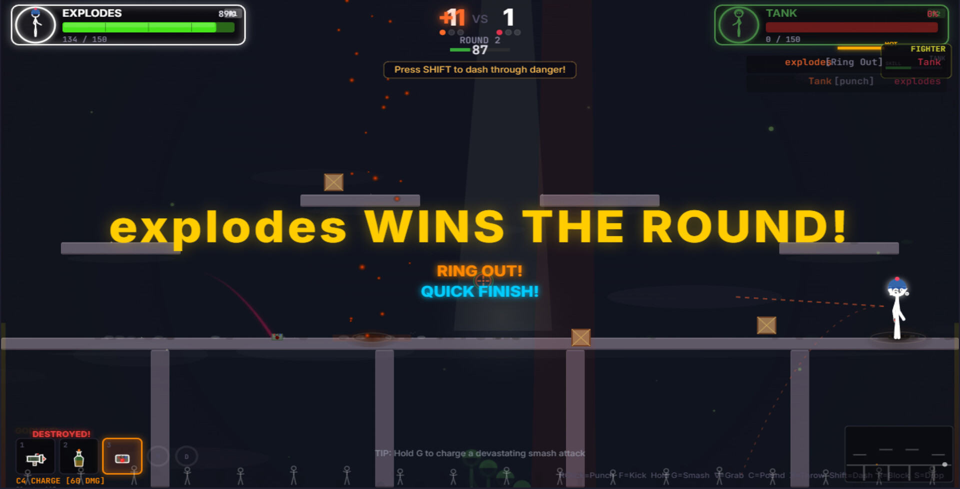 EXPLODES is a fast-paced 2D stickman fighting game packed with explosive weapons, chaotic combat, and nonstop action.