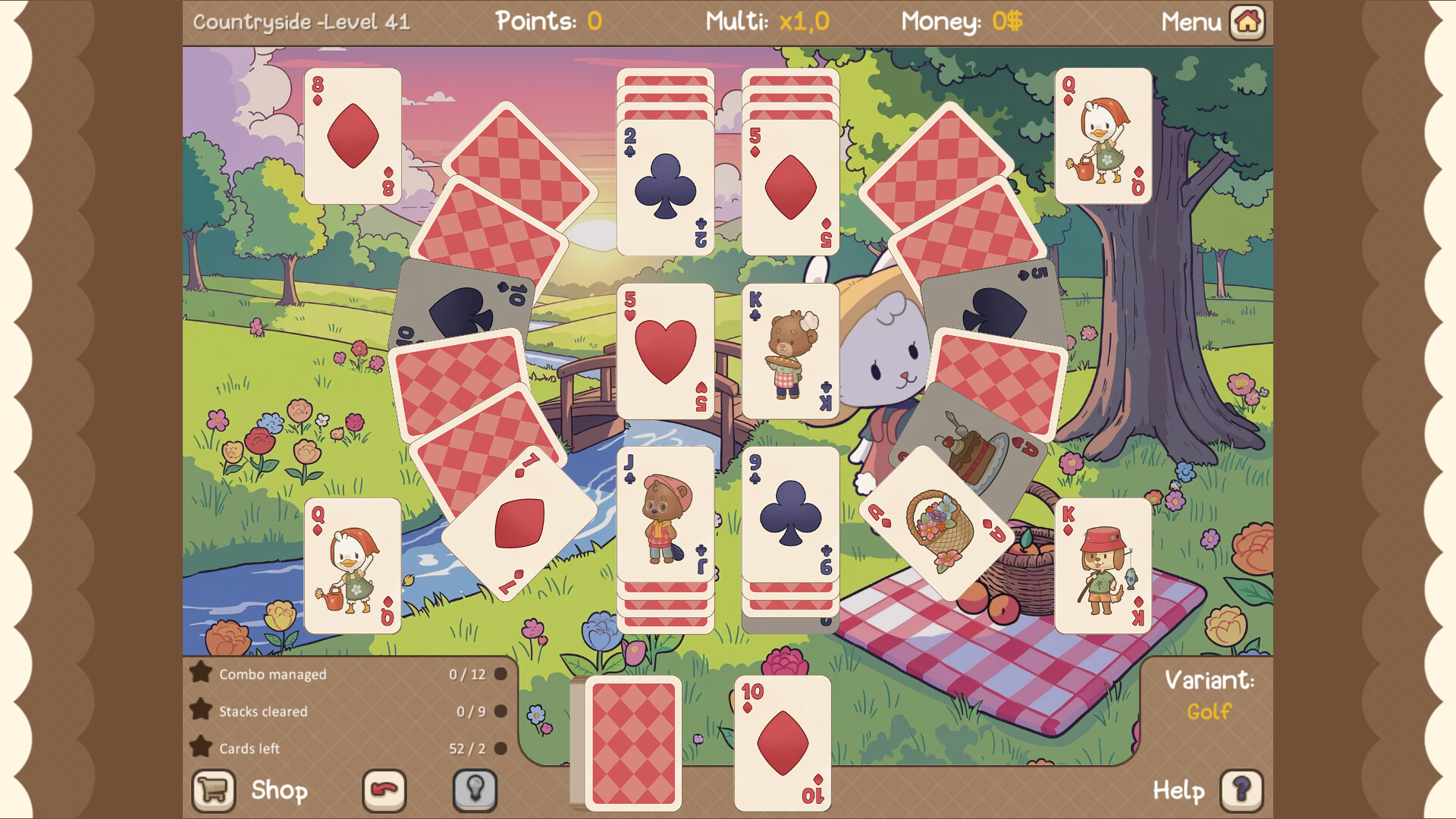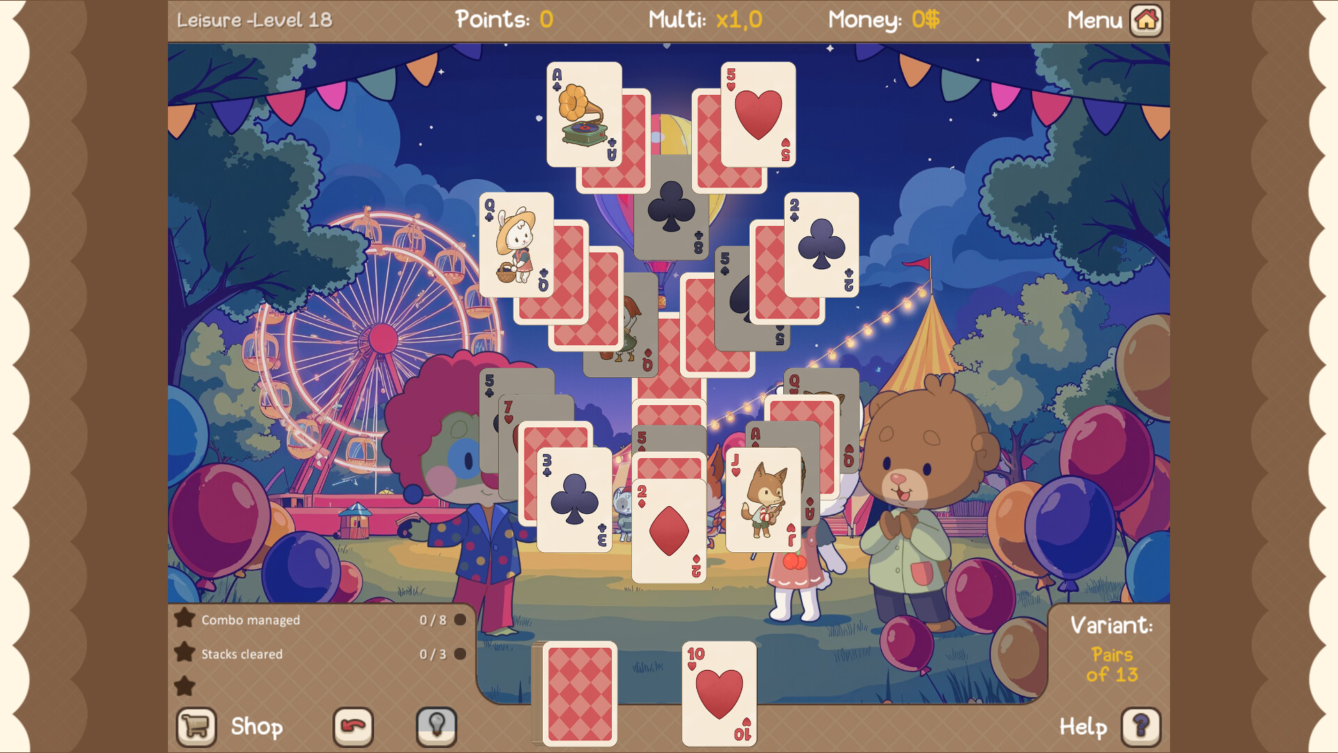 Sort your cards without haste over many levels, accompanied by a charming village community that makes Clover Town a special place.