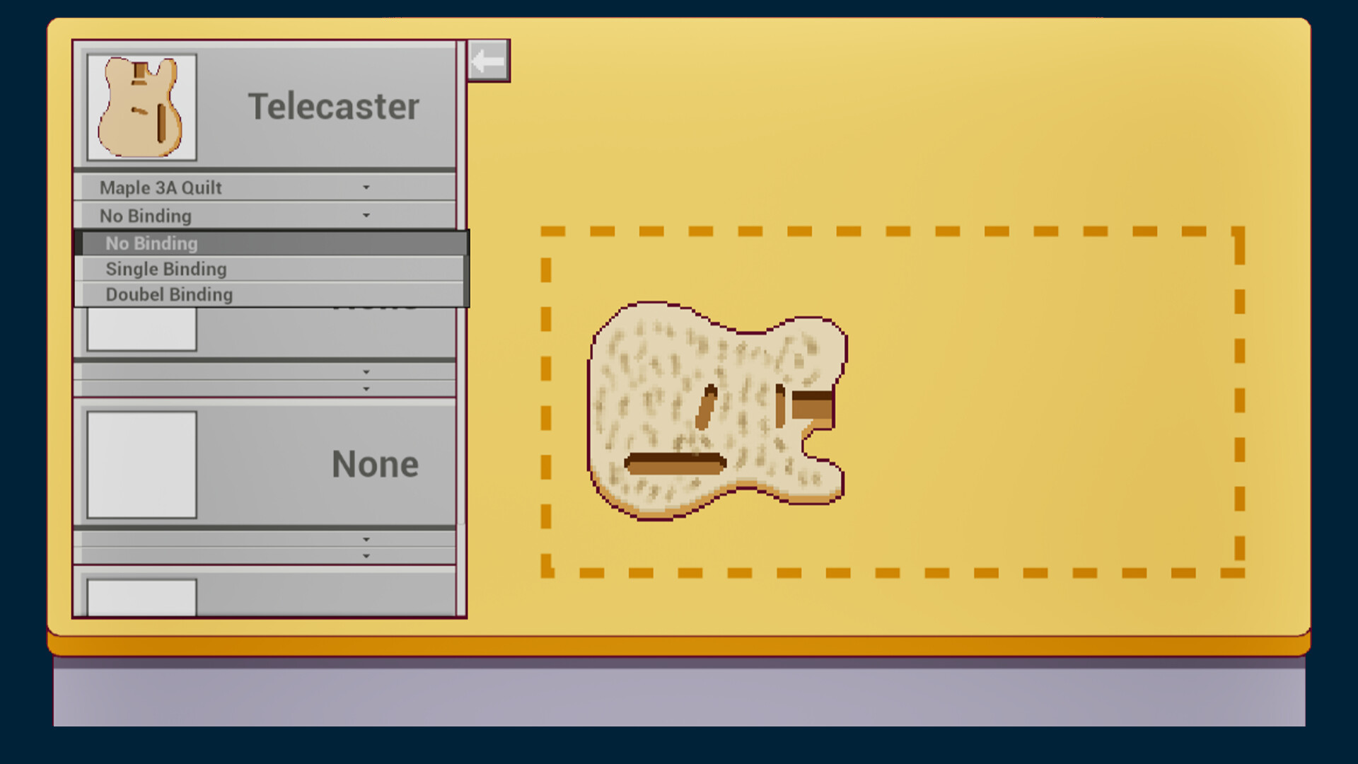 Skip the tedious, repetitive tasks like twisting screws! The game features an intuitive, click-based part installation system, letting you focus entirely on designing and crafting guitars without unnecessary distractions.