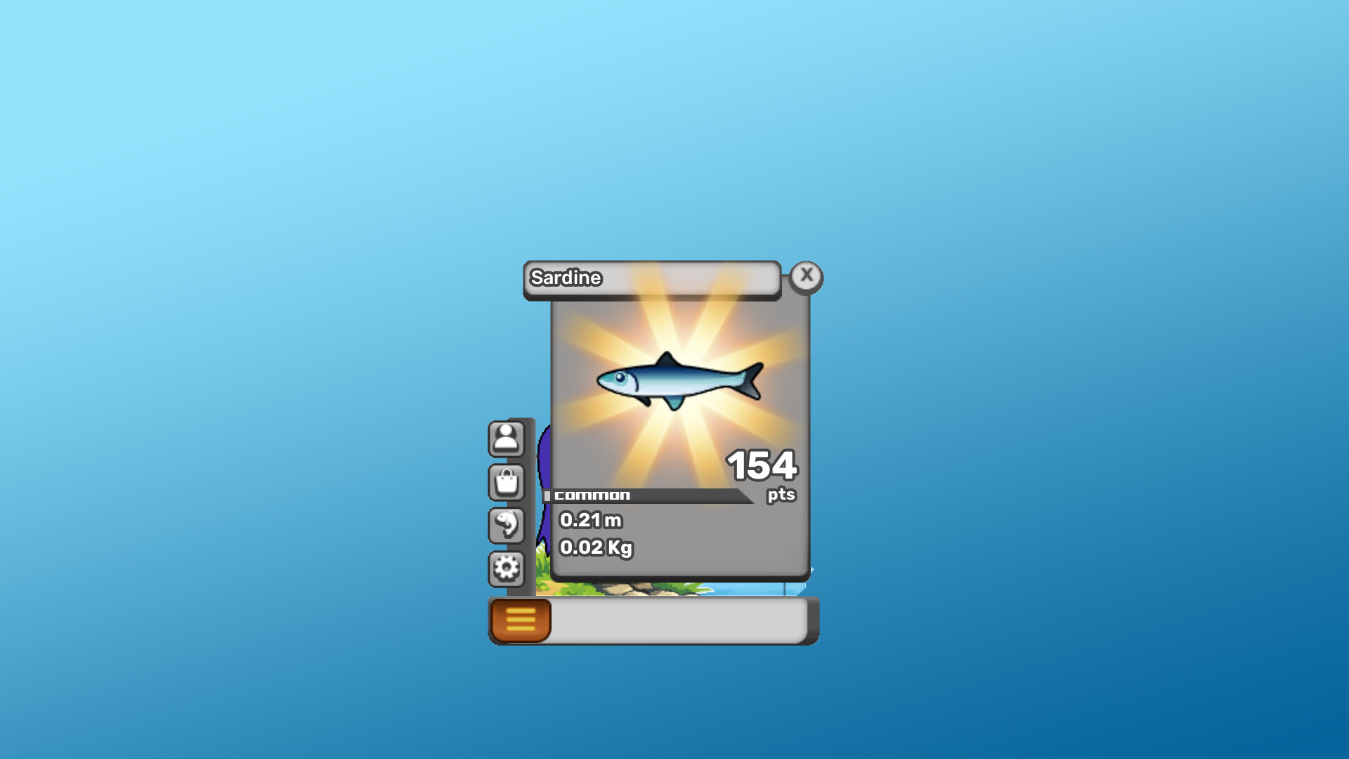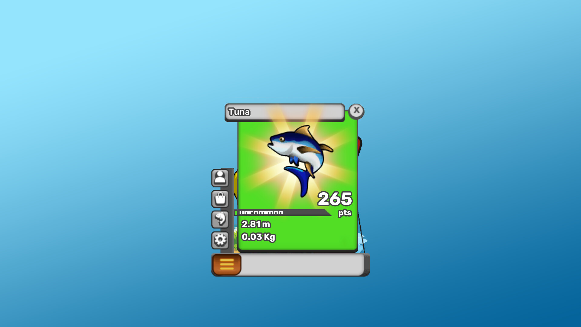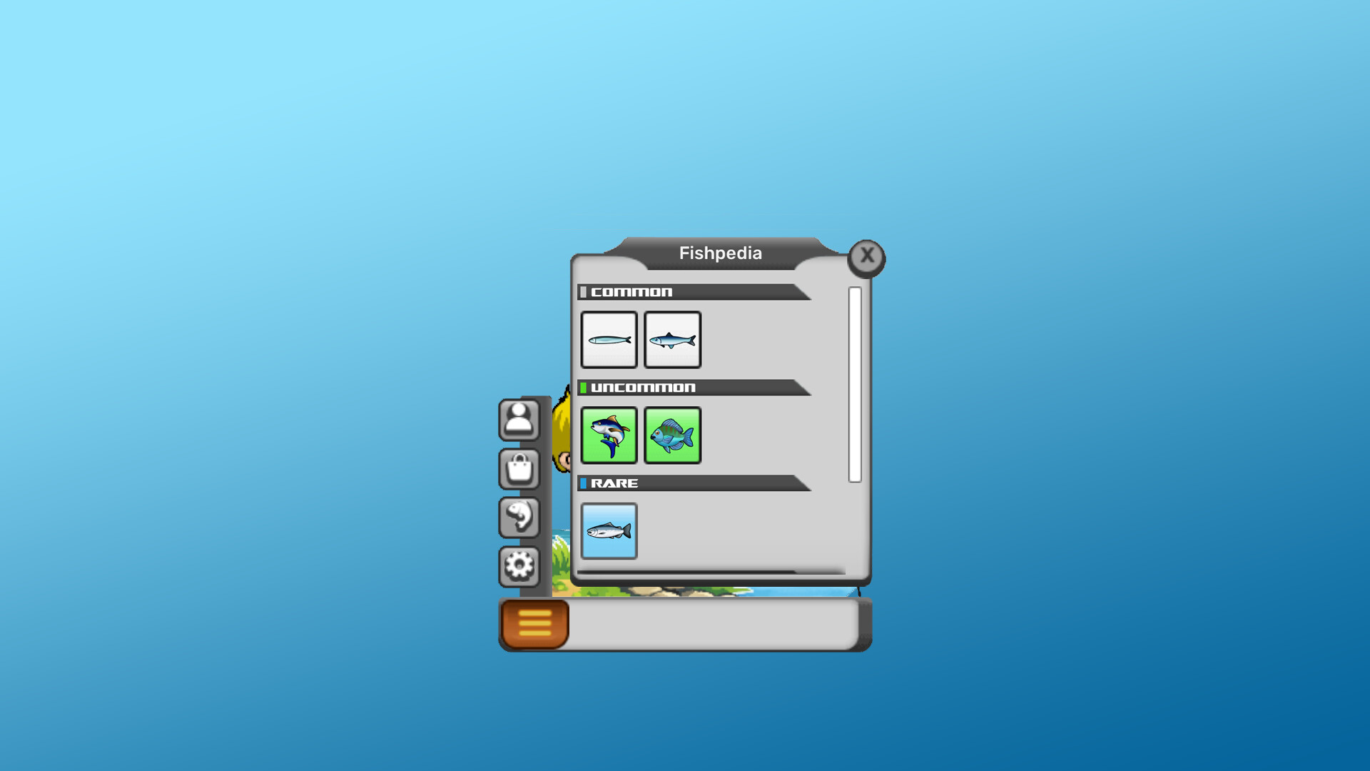 이 게임에는 낚시로 얻은 포인트를 사용할 수 있는 아바타 샵 커스터마이징이 있으며, 잡은 물고기뿐만 아니라 더 많은 포인트를 준 물고기도 기록할 수 있는 자체 Fishpedia가 있습니다! 모든 물고기는 크기와 무게를 기반으로 무작위 포인트 계산을 가집니다!