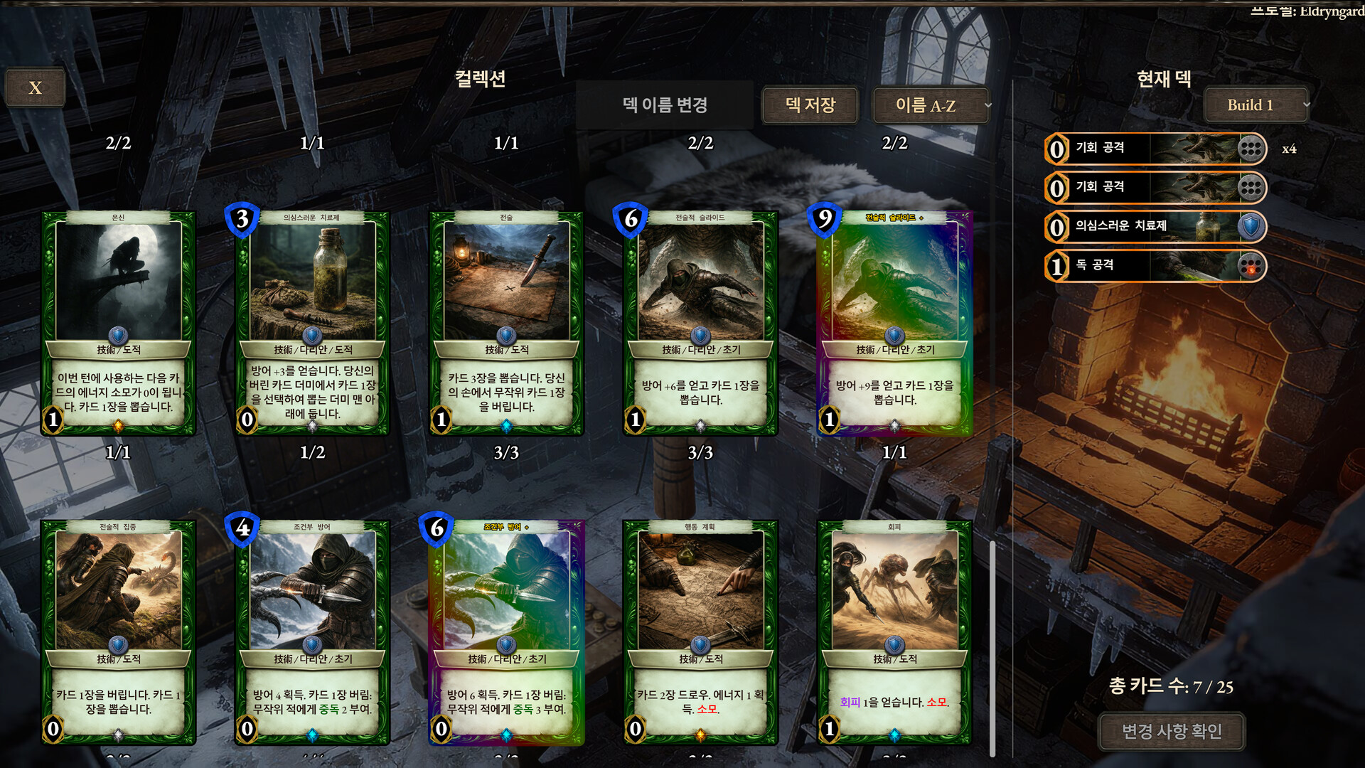 엘드린가드에서 지식은 강철만큼이나 중요한 자원입니다. 전장에서 발견되는 모든 카드는 당신의 전략에 통합할 수 있는 전투 모듈을 의미합니다. 발견된 기술들을 개인 도서관에 저장하고 덱을 정제하여 각 영웅의 강점을 극대화하세요. 여기서 당신은 단순히 카드를 내는 것이 아니라, 승리의 메커니즘을 직접 설계합니다.
