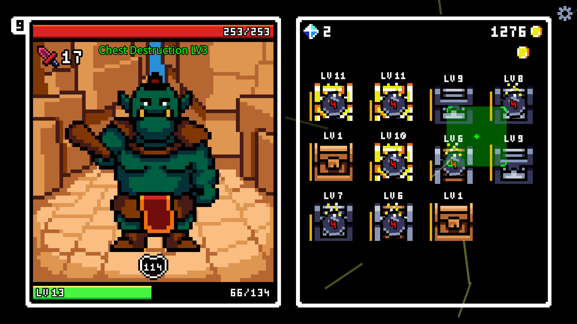 전투로 얻은 동전으로 스킬 트리에서 보물상자를 더 효율적으로 박살 낼 새로운 파괴 무기들을 해금하세요.