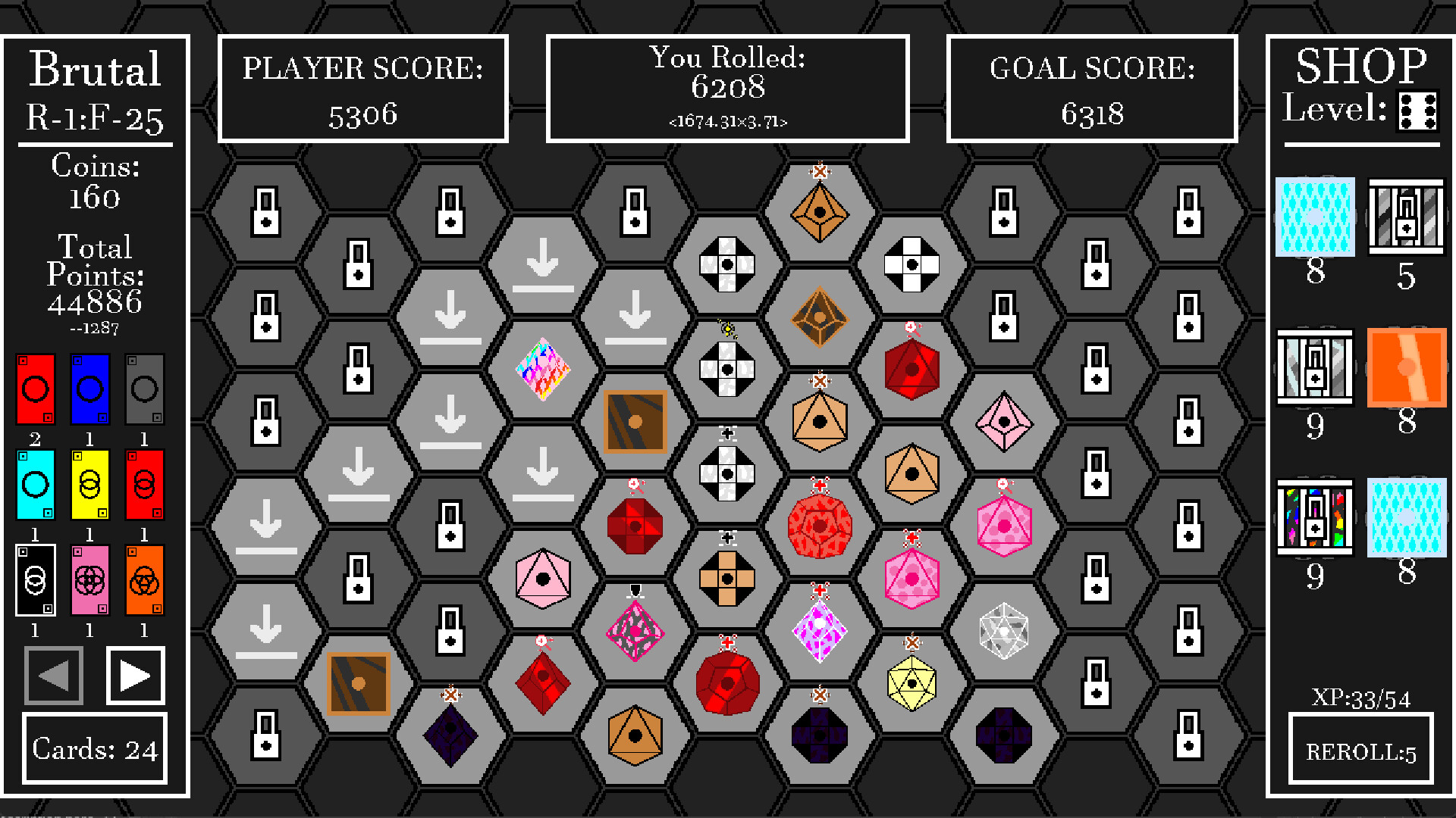 Each round, place dice in the grid and roll to generate points. With over 150 unique dice, every run offers new synergies, strategies, and ways to play. Will you stack multipliers to hit the goal… or bend the rules and lower it.