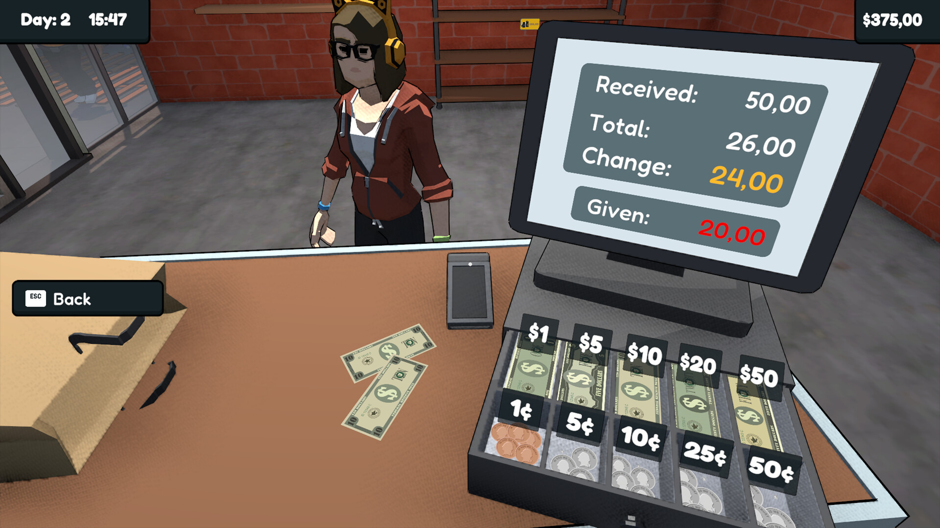 When customers arrive at the register, you are in full control. Scan products with the barcode reader, carefully calculate and hand out the exact change for cash payments, or quickly complete credit card transactions via the POS terminal to close the sale.