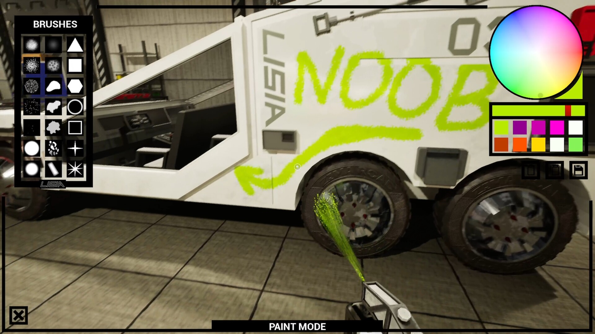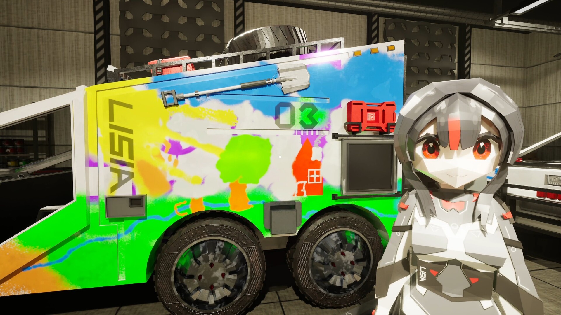 창의성: 완벽한 차체 도색 시스템. 스프레이 캔을 사용하여 트럭의 독특한 스타일을 만들어 보세요. 기억하세요 — 회사 자산에 대한 모든 피해는 귀하의 책임입니다.