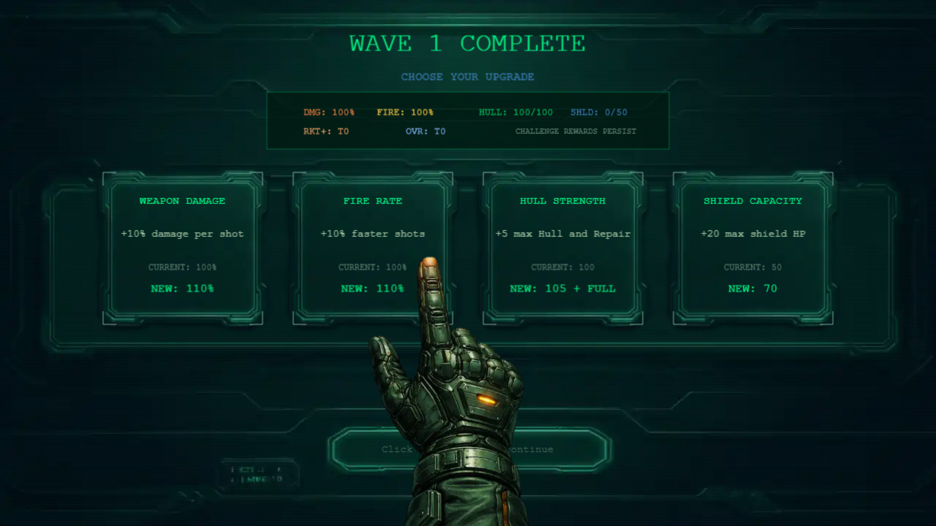Choose powerful upgrades between waves to adapt your strategy. Build for damage, defense, or survival—every choice matters.