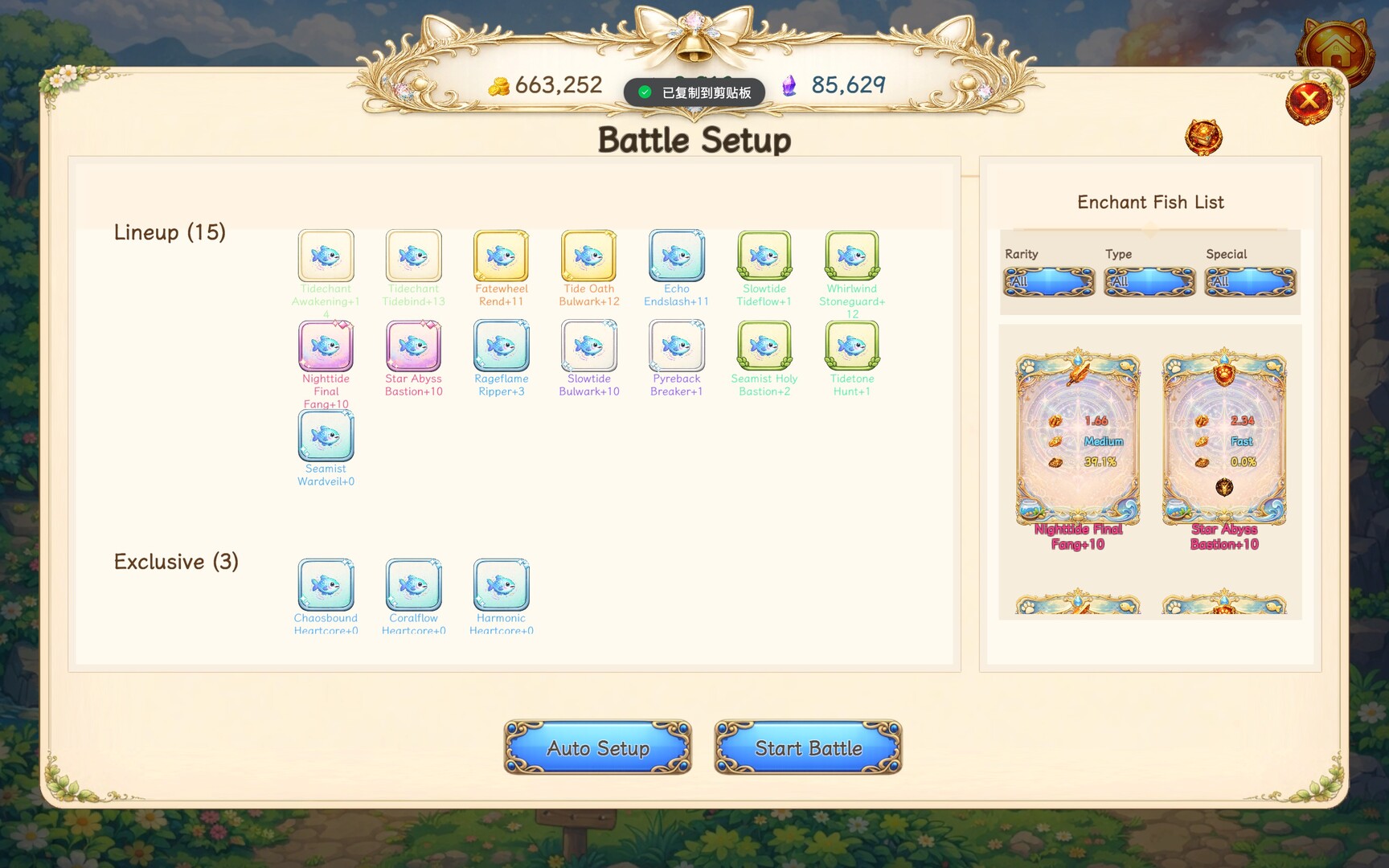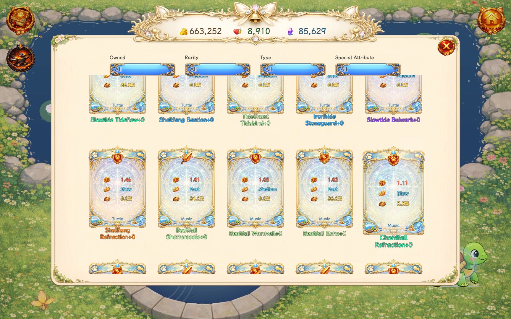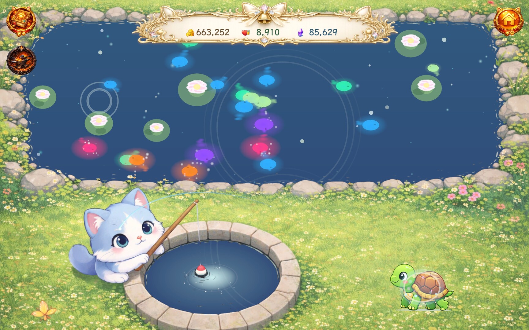 Fish by the well and collect enchanted fish of different rarities, attributes, and special traits. They are not only cute companions, but also an important part of your battles.