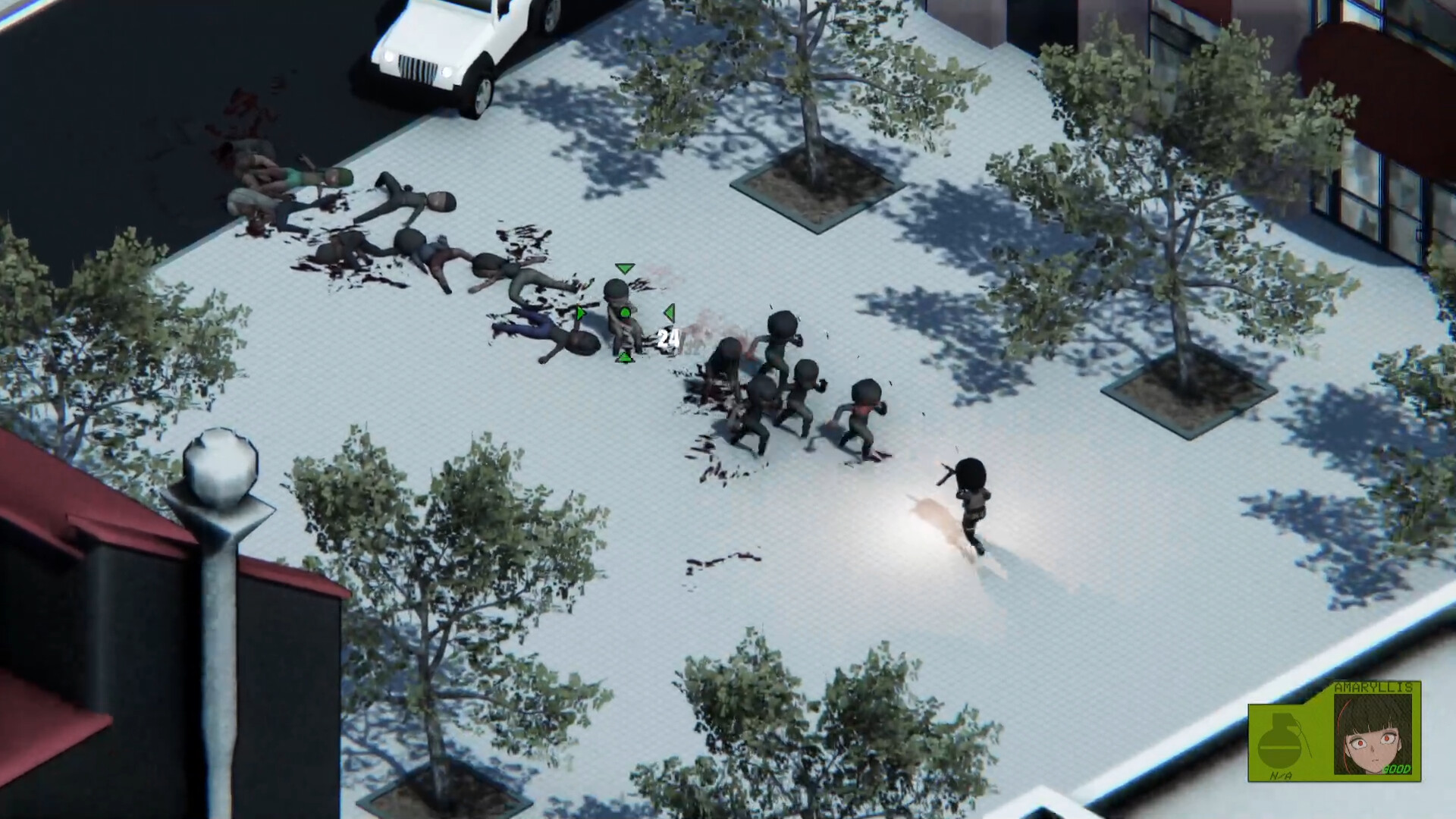 Project Accipiter is a fast-paced isometric 3D chibi zombie shooter with visual novel-style storytelling.