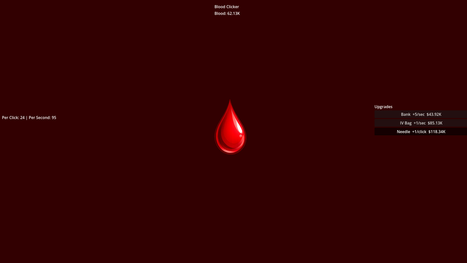 Blood Clicker is a simple idle clicker game built around one goal: collect as much blood as possible.