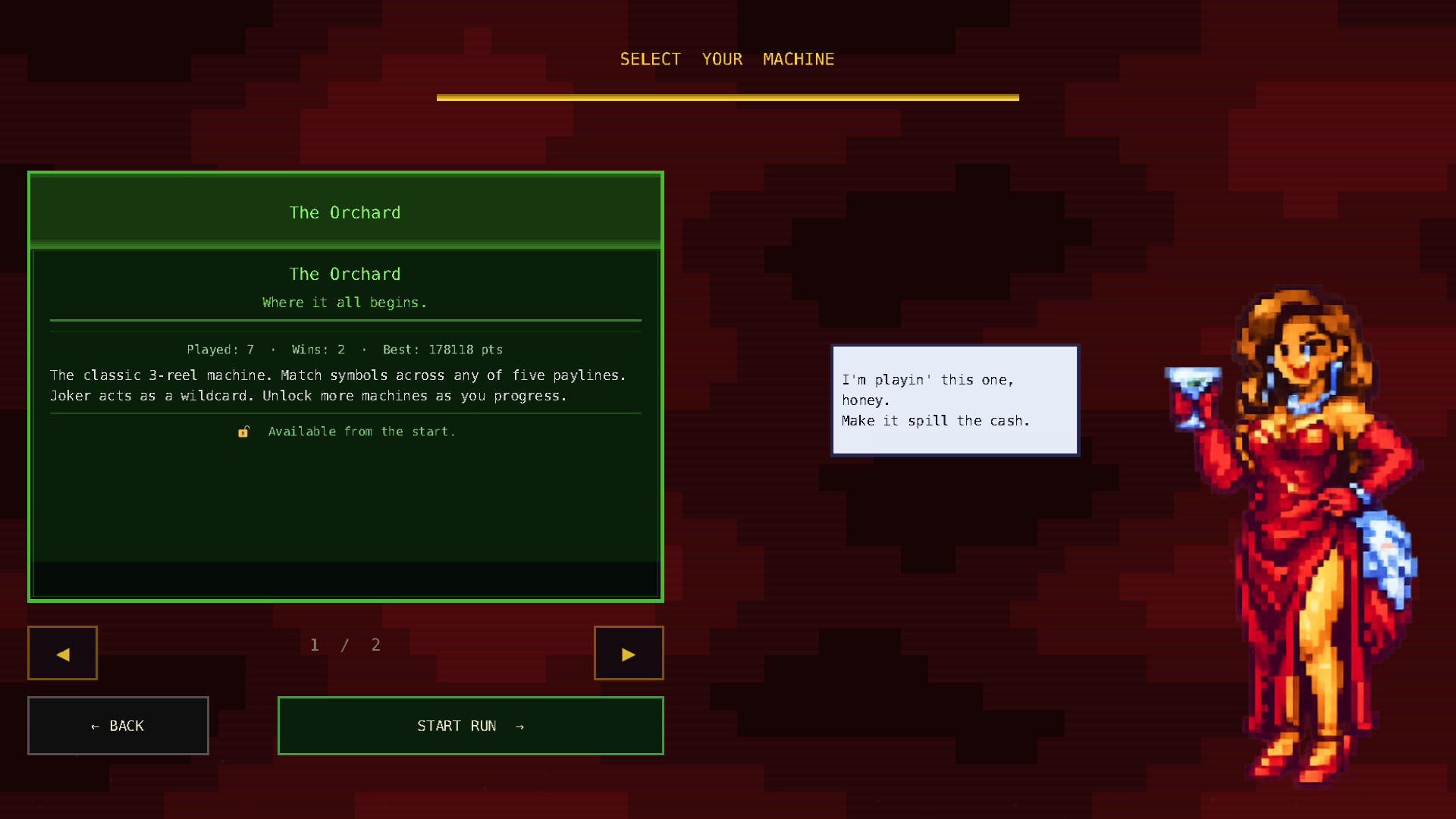 Build Your Machine THE HOUSE is a roguelite where you design and engineer your own slot machines from the ground up. Add reels, sculpt your symbol roster, and tune the odds until every spin feels less like gambling and more like inevitability. Every run starts simple — and ends in gloriously cascading payouts that print money faster than the mob can count it.